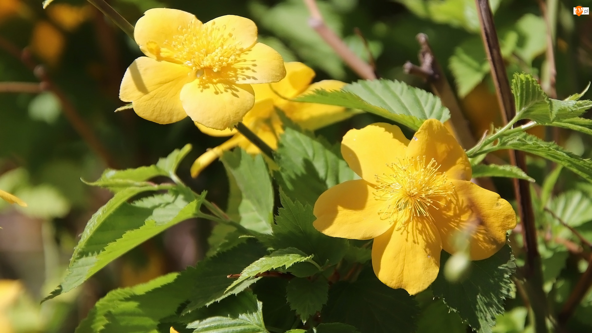 Róże, Listki, Żółte, Kwiaty, Róża hugonis