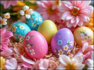 Pisanki, Wielkanoc, Jajka, Kolorowe, Kwiaty