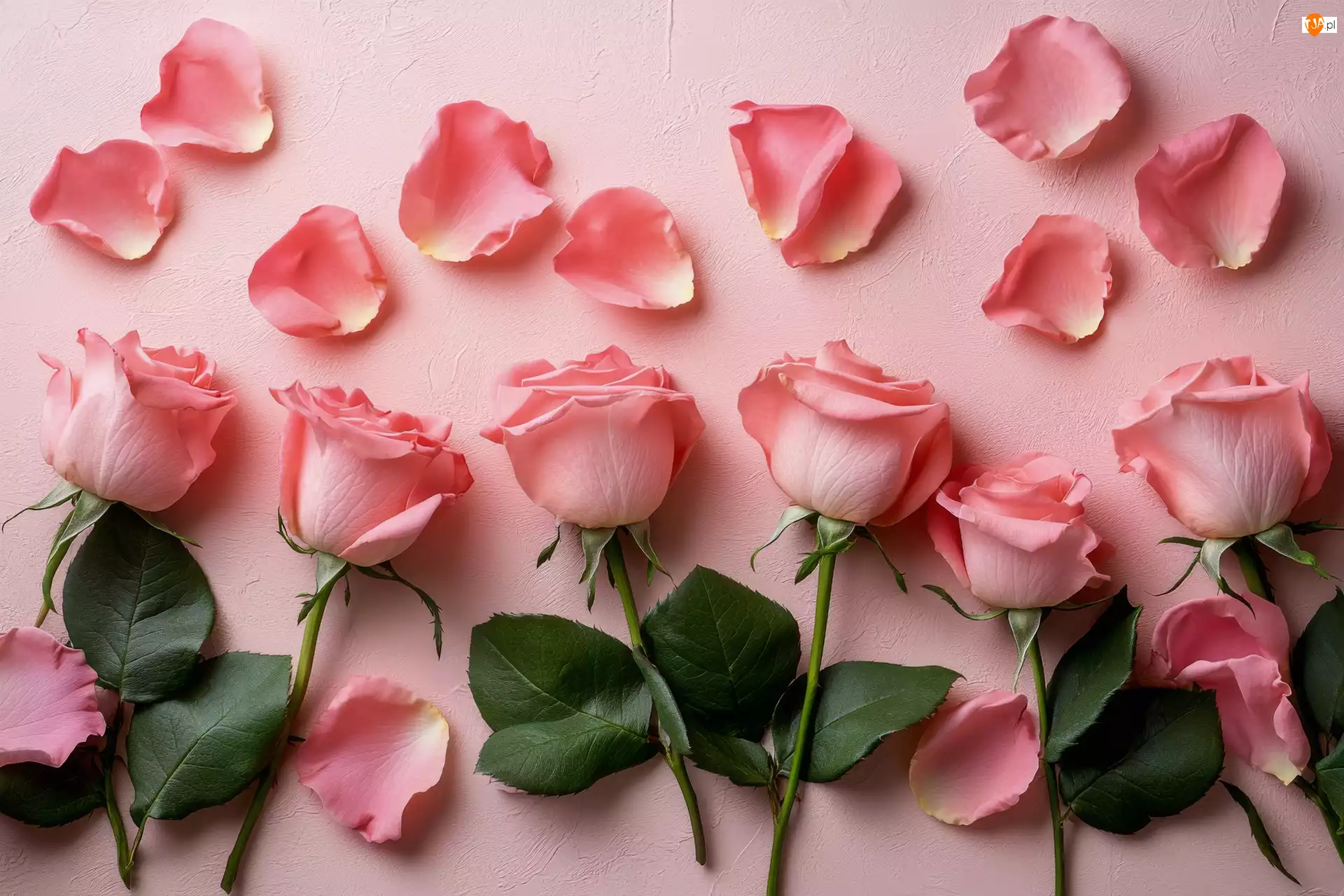 Tagi: Róże Różowe Listki Tło Płatki Różowe