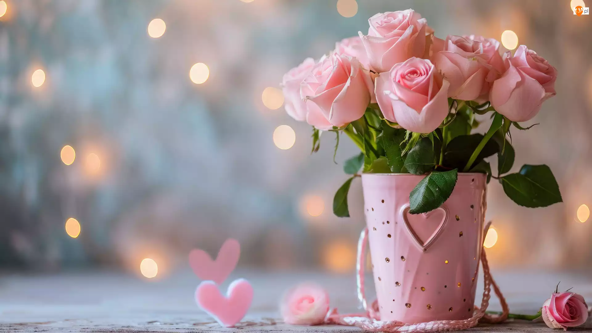Róże, Różowe, Tło, Kwiaty, Wazon, Serca, Bukiet