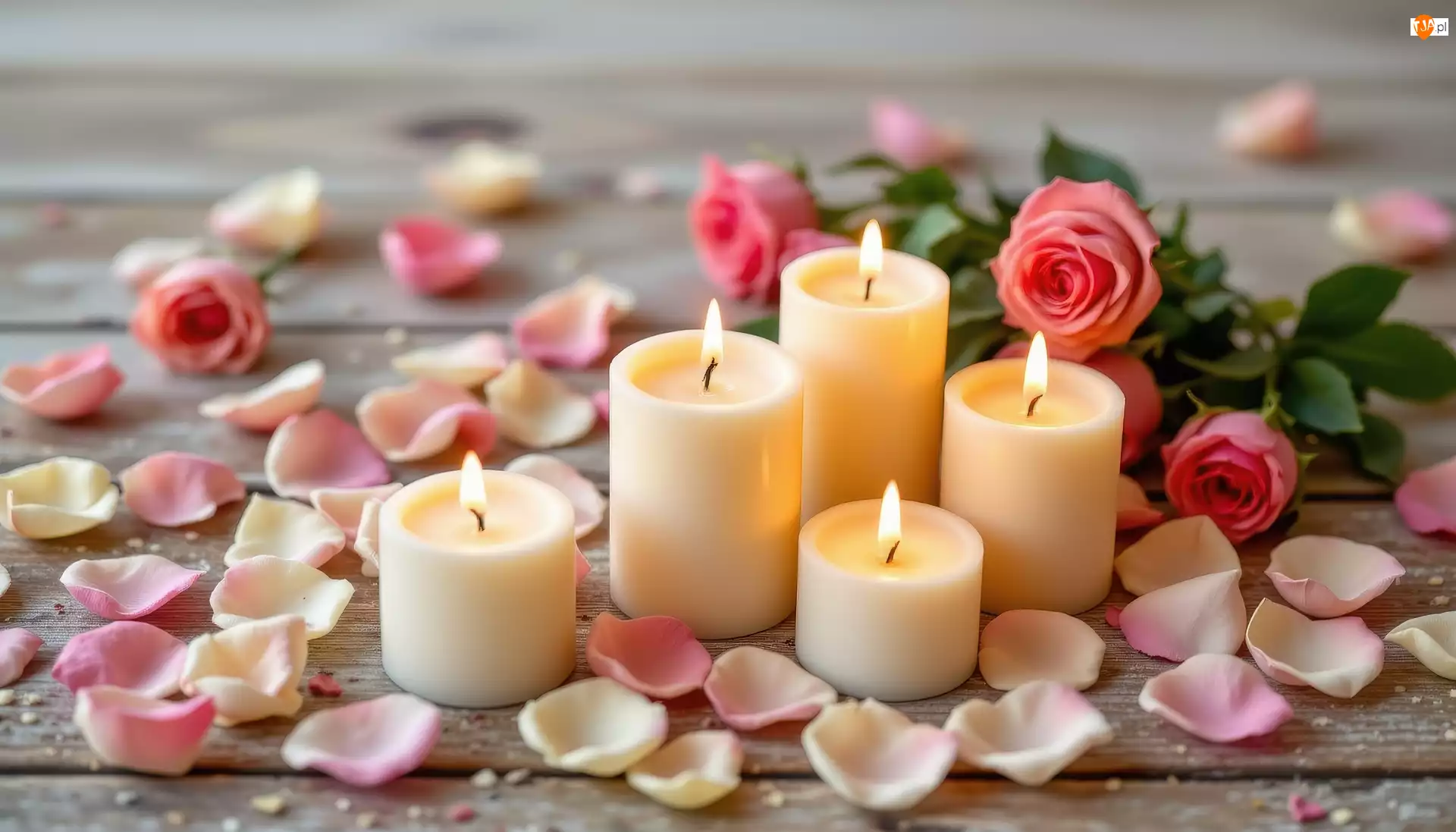 Róże, Świeczki, Płatki