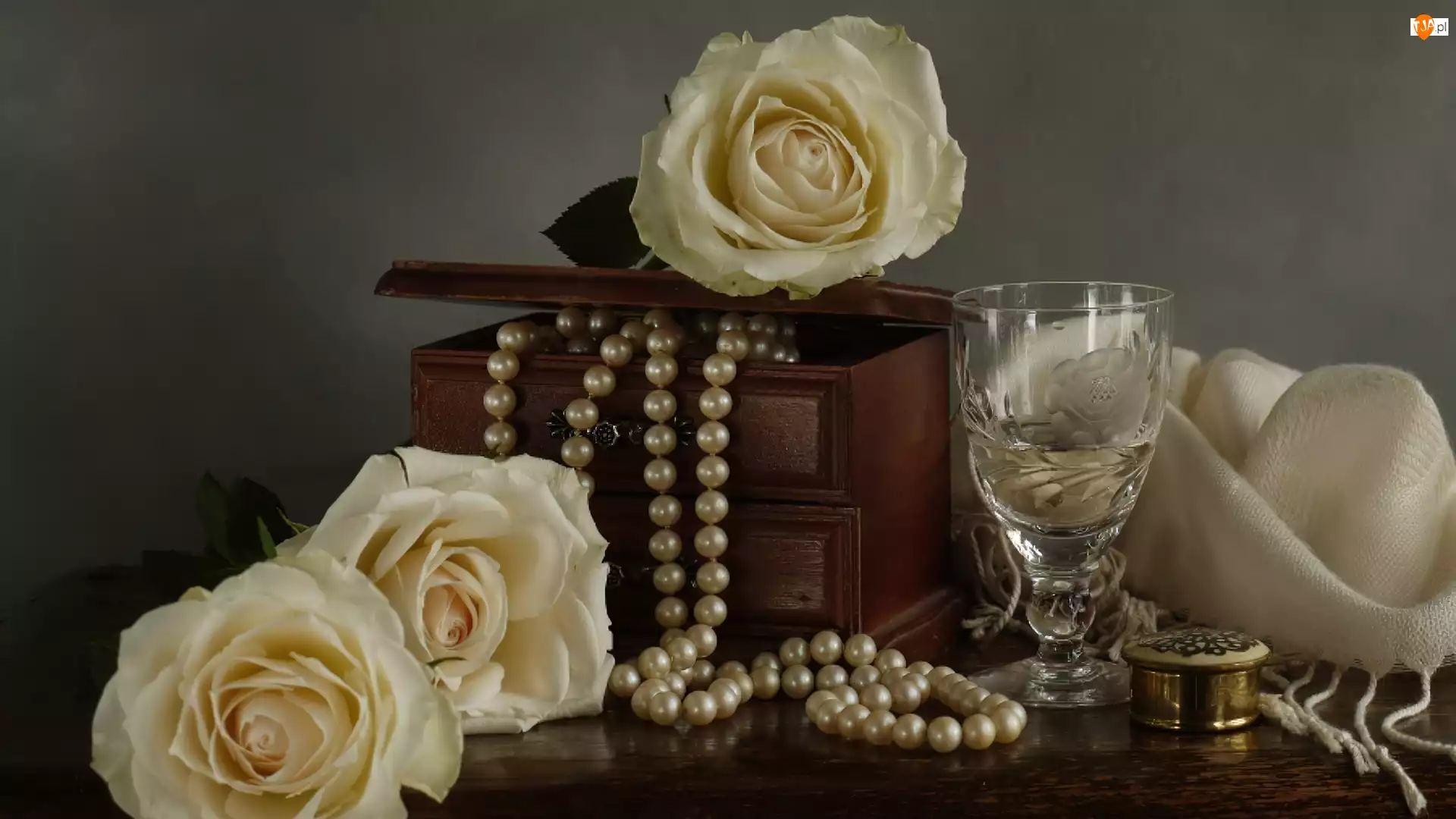Róże, Szal, Perły, Szkatułka