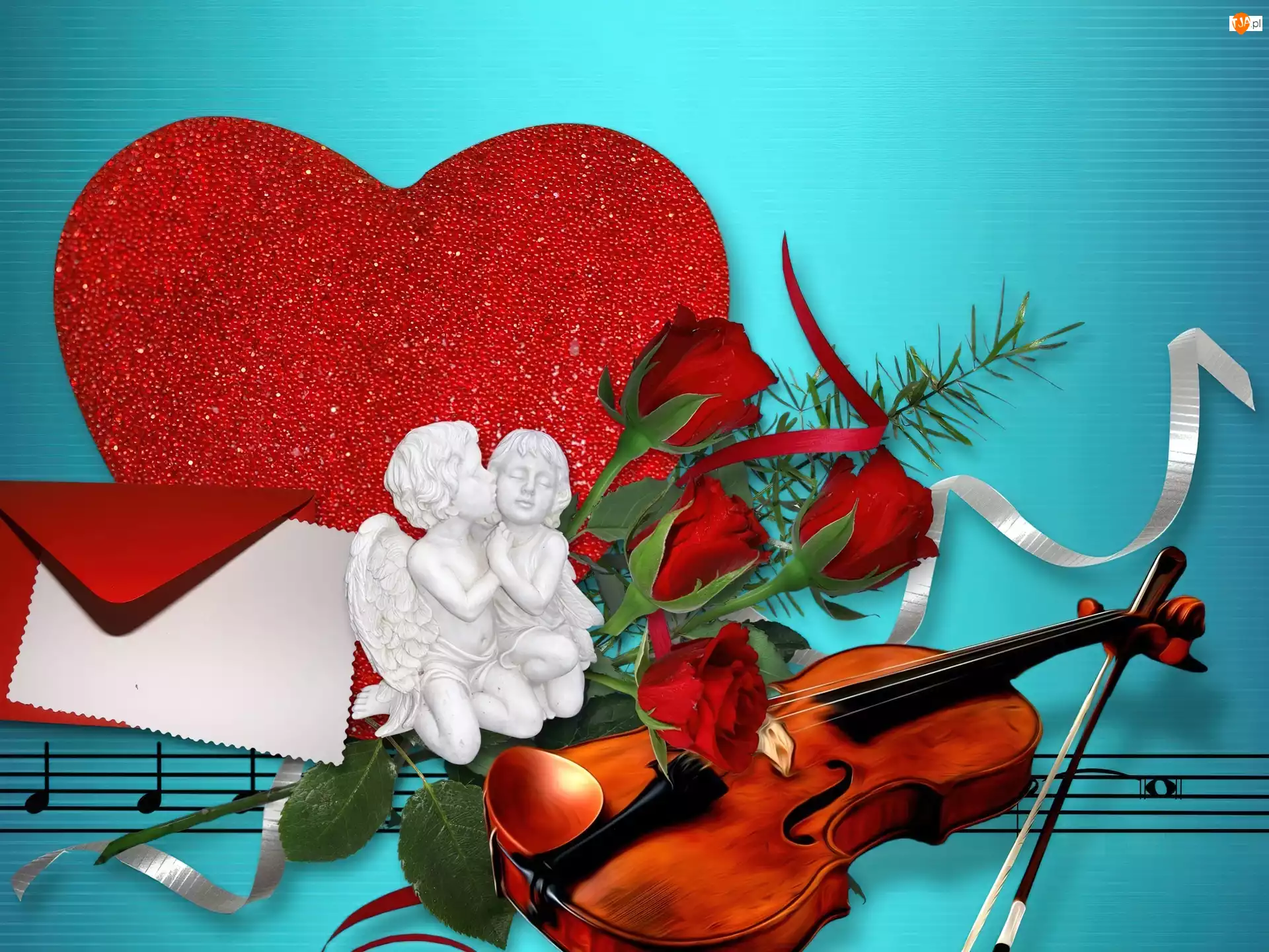 Róże, Walentynki, Skrzypce, Serce, Figurki