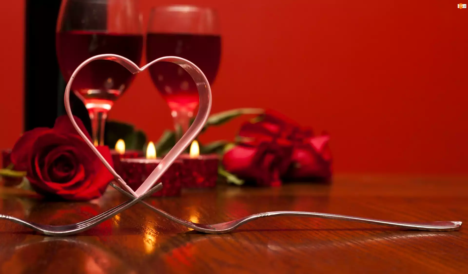 Róże, Widelce, Kieliszki, Serce, Świeczki