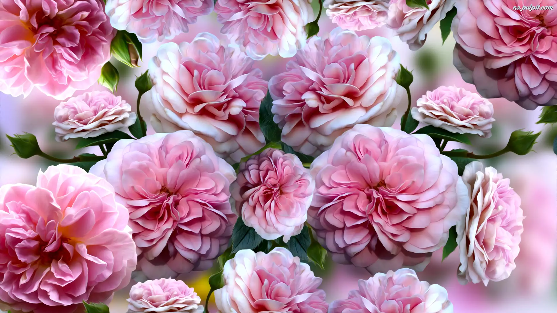 Rozwinięte, Grafika, Różowe, Kwiaty, Róże