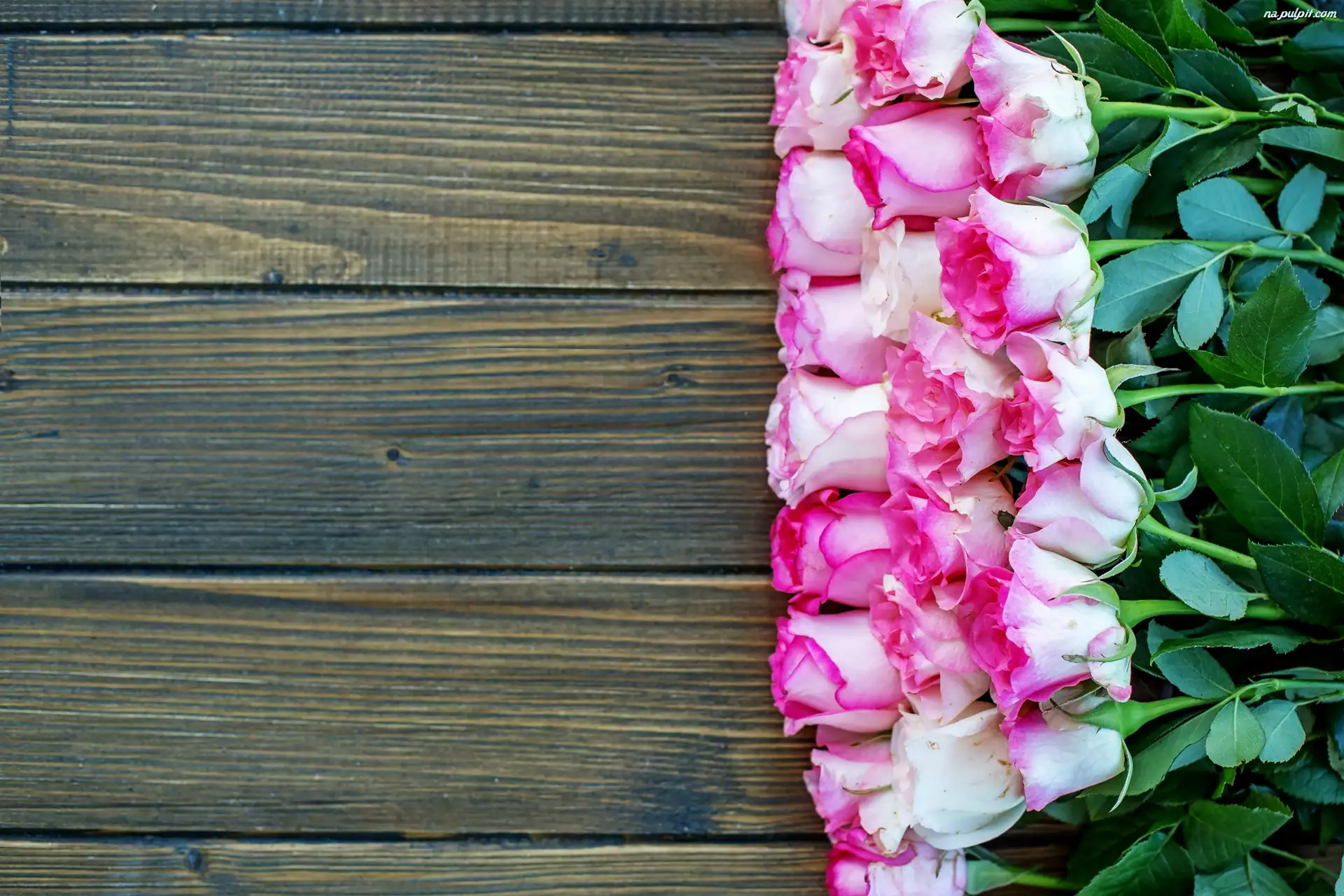 Deski, Biało-różowe, Róże, Listki