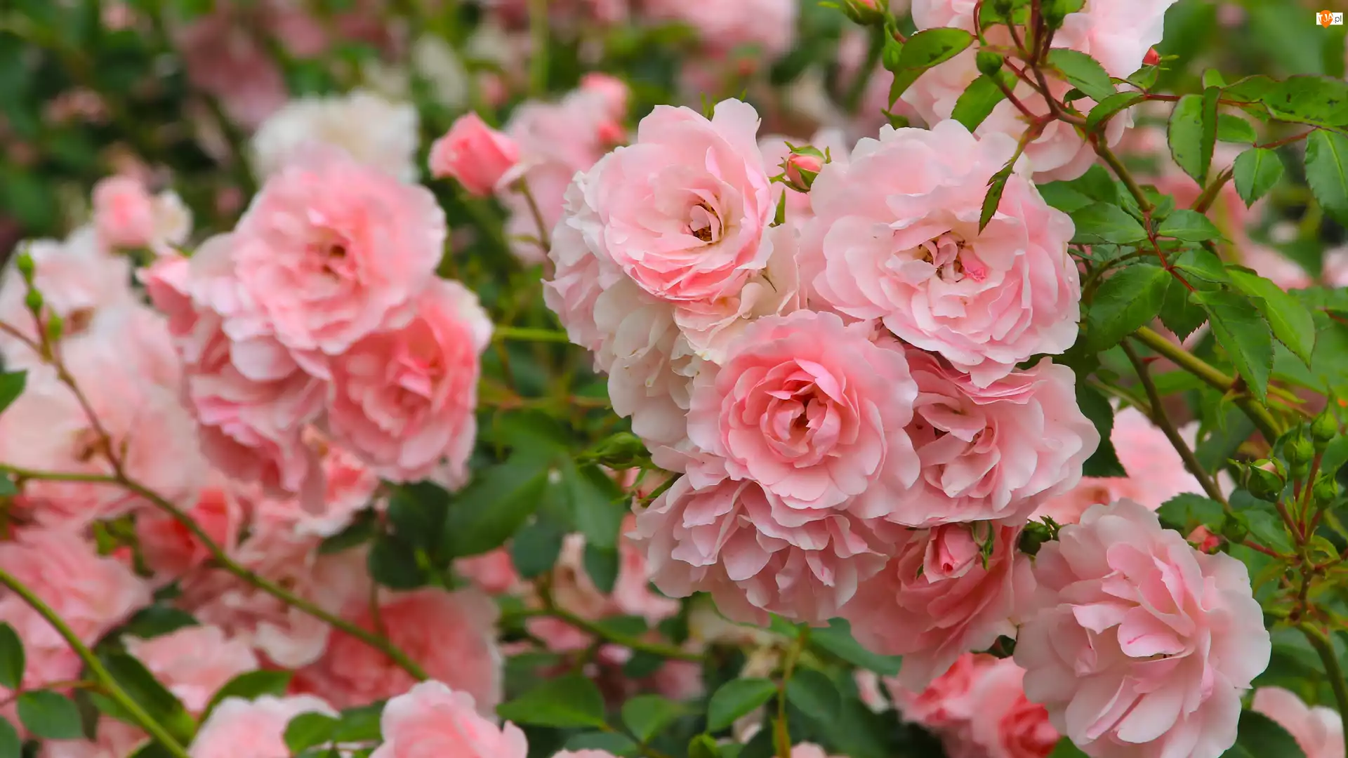 Róże, Zbliżenie, Rozkwitnięte, Różowe, Krzew