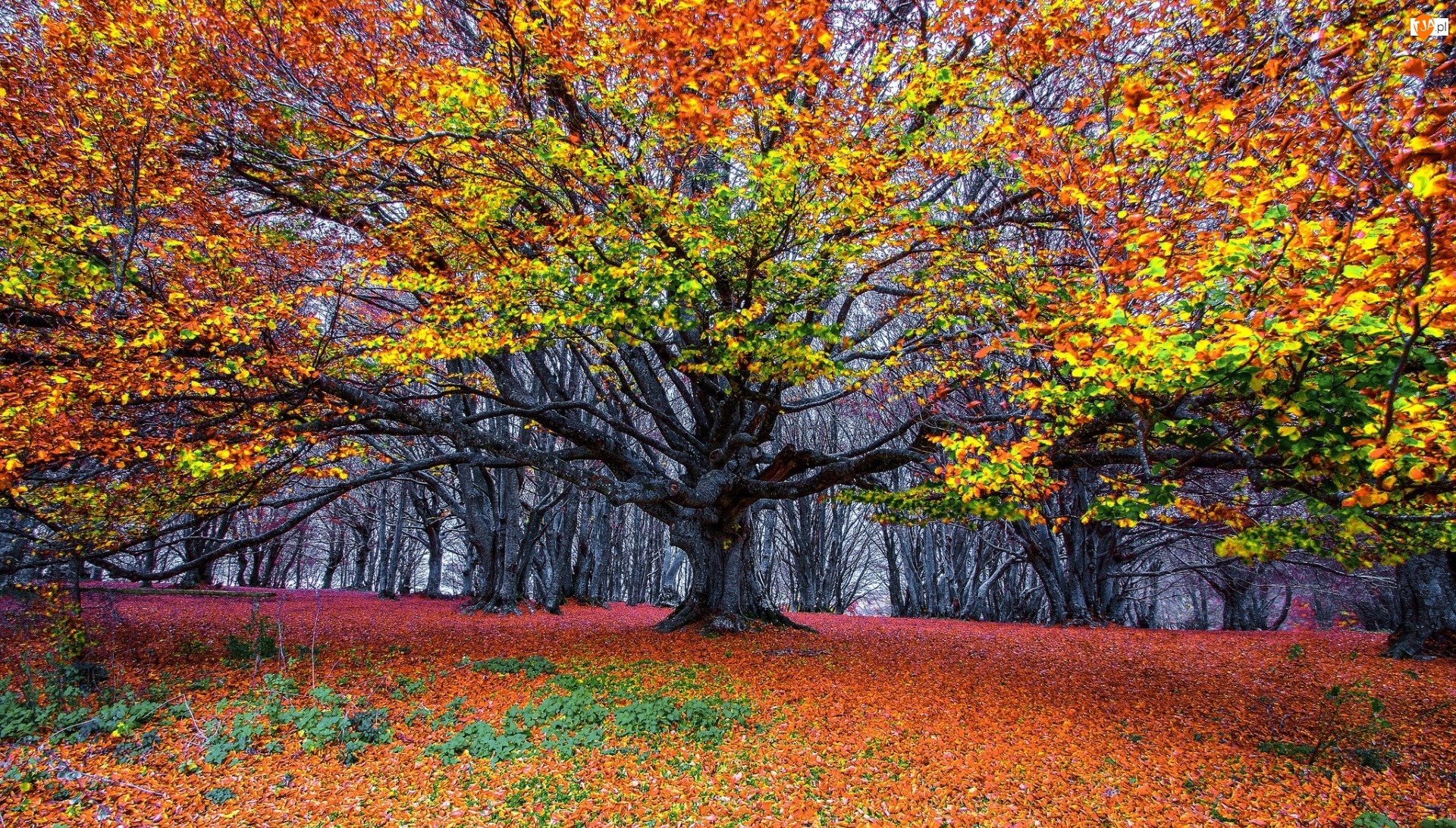 Liście, Jesień, Drzewo, Rozłożyste, Las