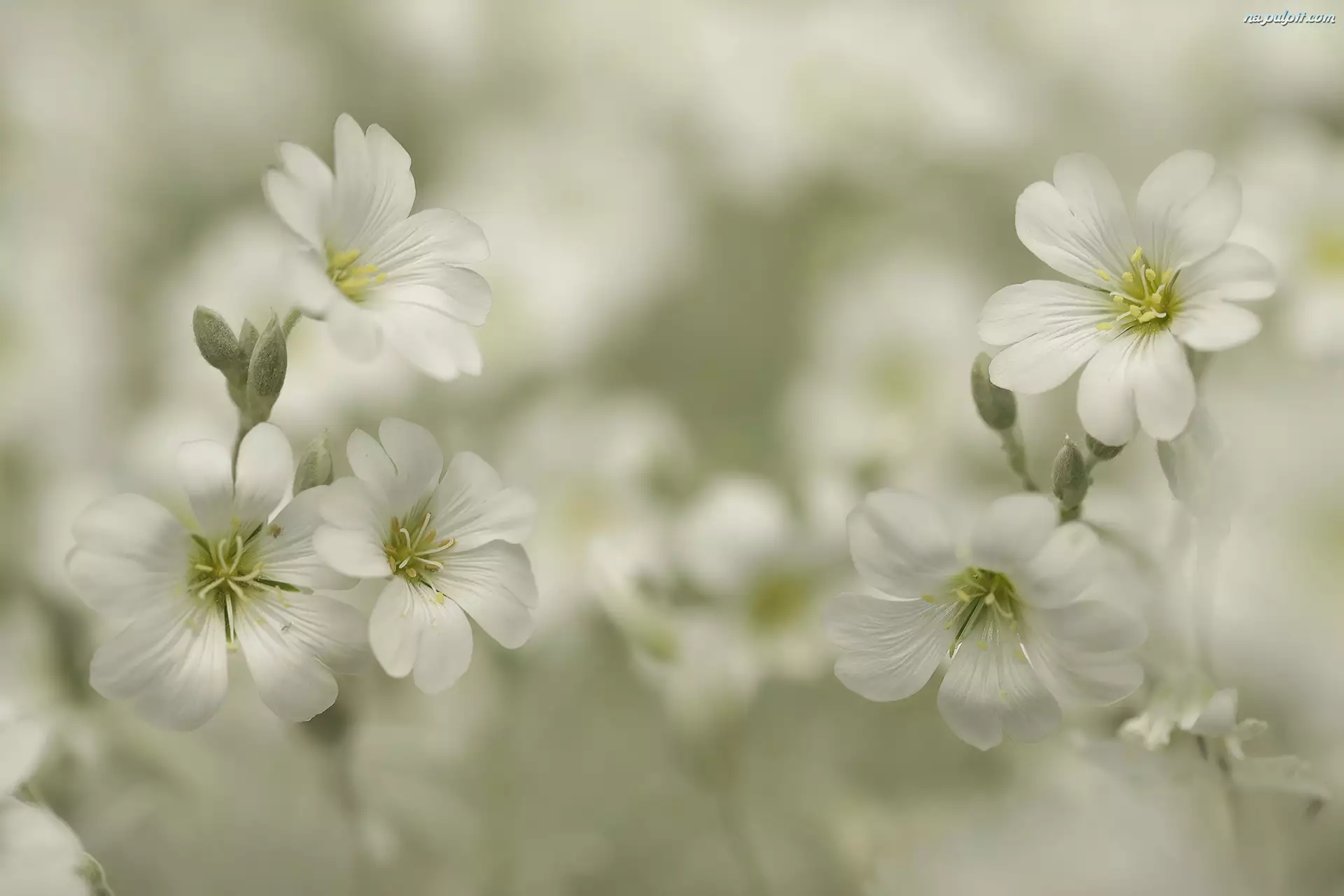 Rozmyte tło, Białe, Kwiaty, Zbliżenie