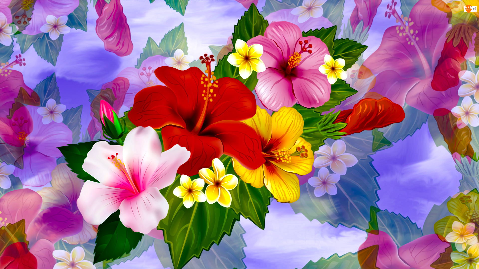 Grafika, Kwiaty, Kolorowe, Hibiskusy