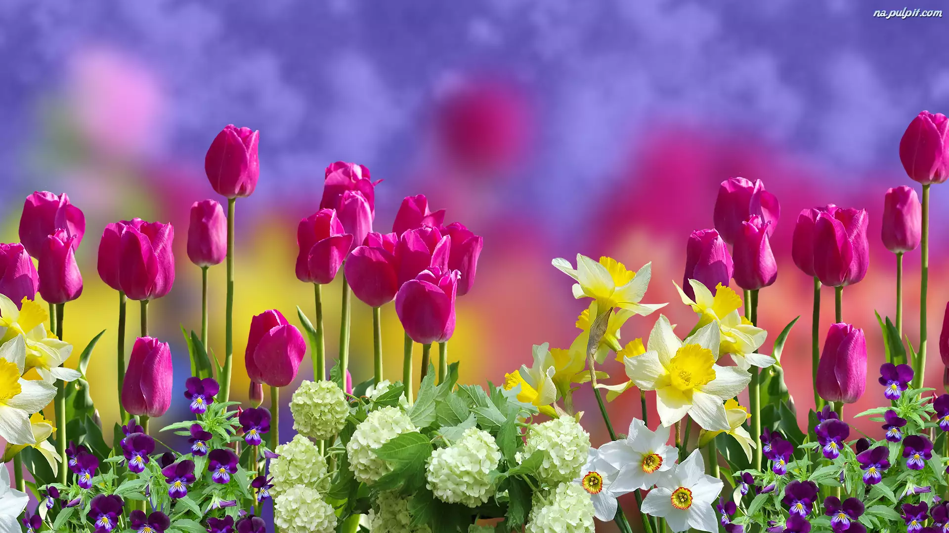 Żonkile, Rozmycie, Narcyzy, Tulipany, Bratki