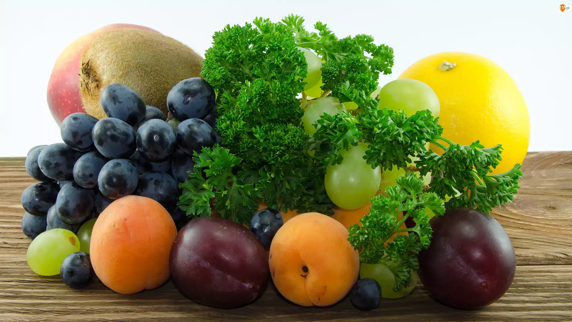Winogrono, Śliwki, Pietruszka naciowa, Owoce, Grejpfrut, Morele, Kiwi