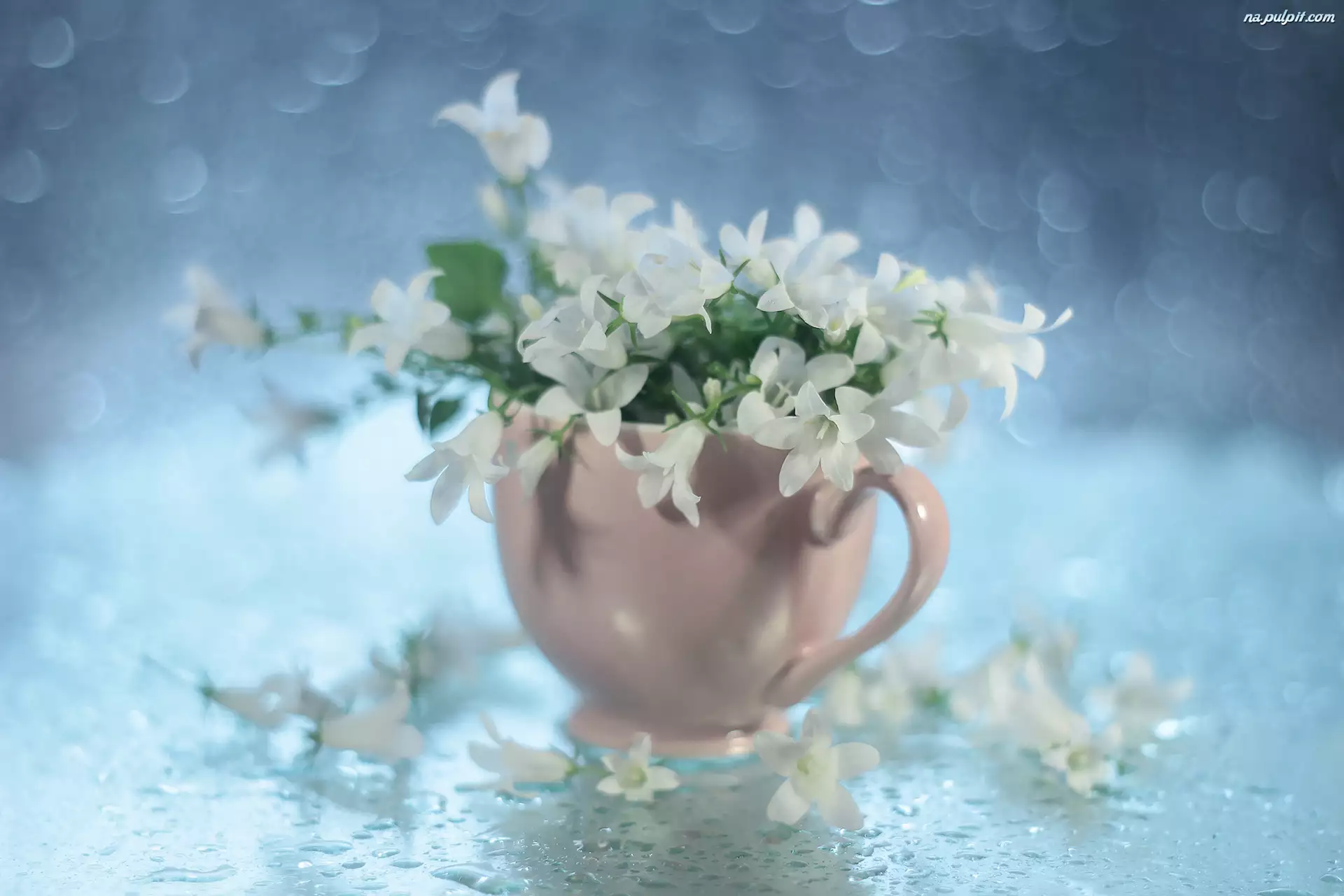 Filiżanka, Różowa, Dzwonki, Kwiaty, Campanula, Białe