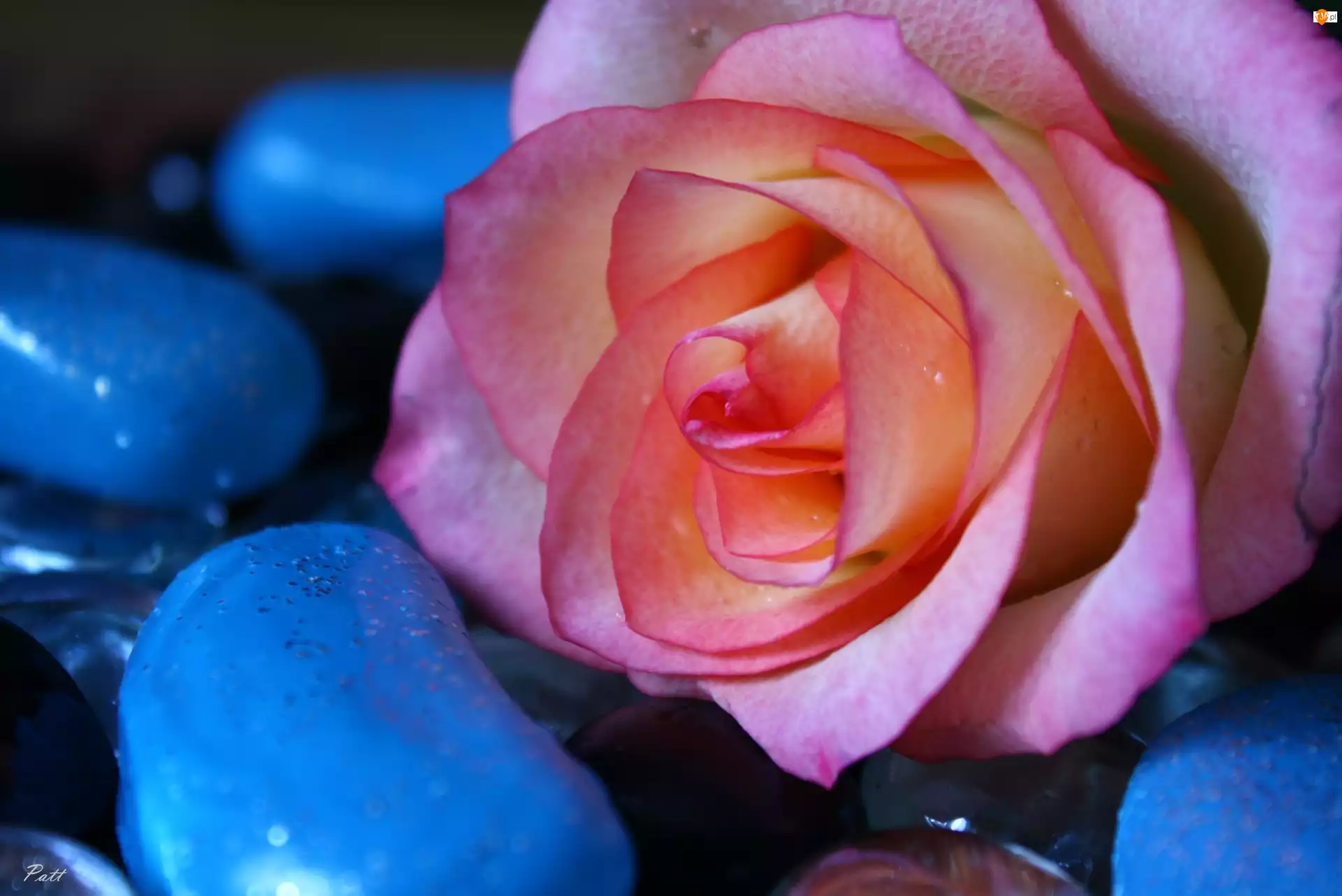 Różowa, Kamienie, Róża, Niebieskie