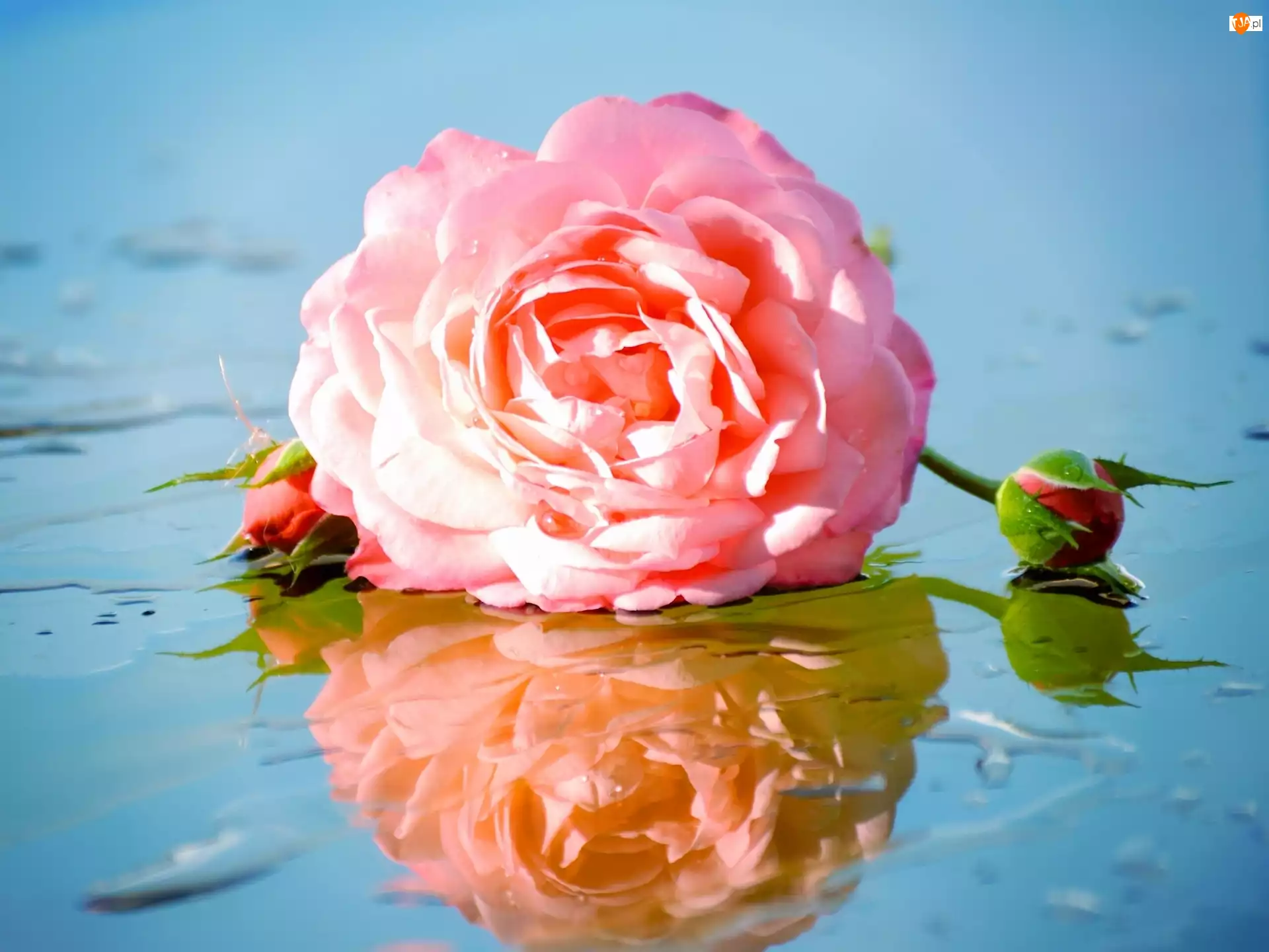 Różowa, Woda, Róża, Pączki