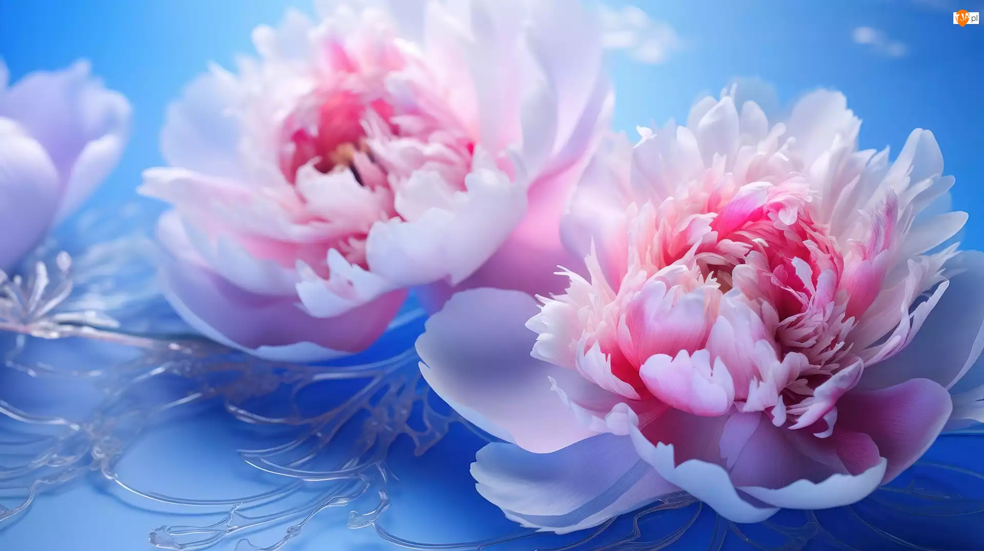 Różowe, Grafika, Piwonie, Dwie, Kwiaty