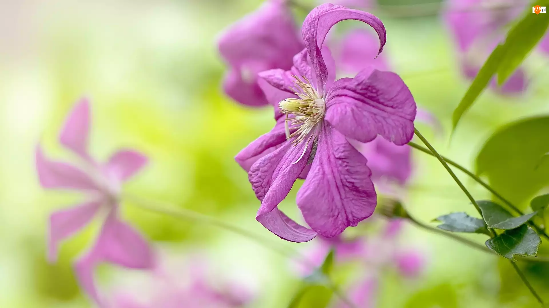 Powojnik, Rozmycie, Różowy, Kwiaty, Liście