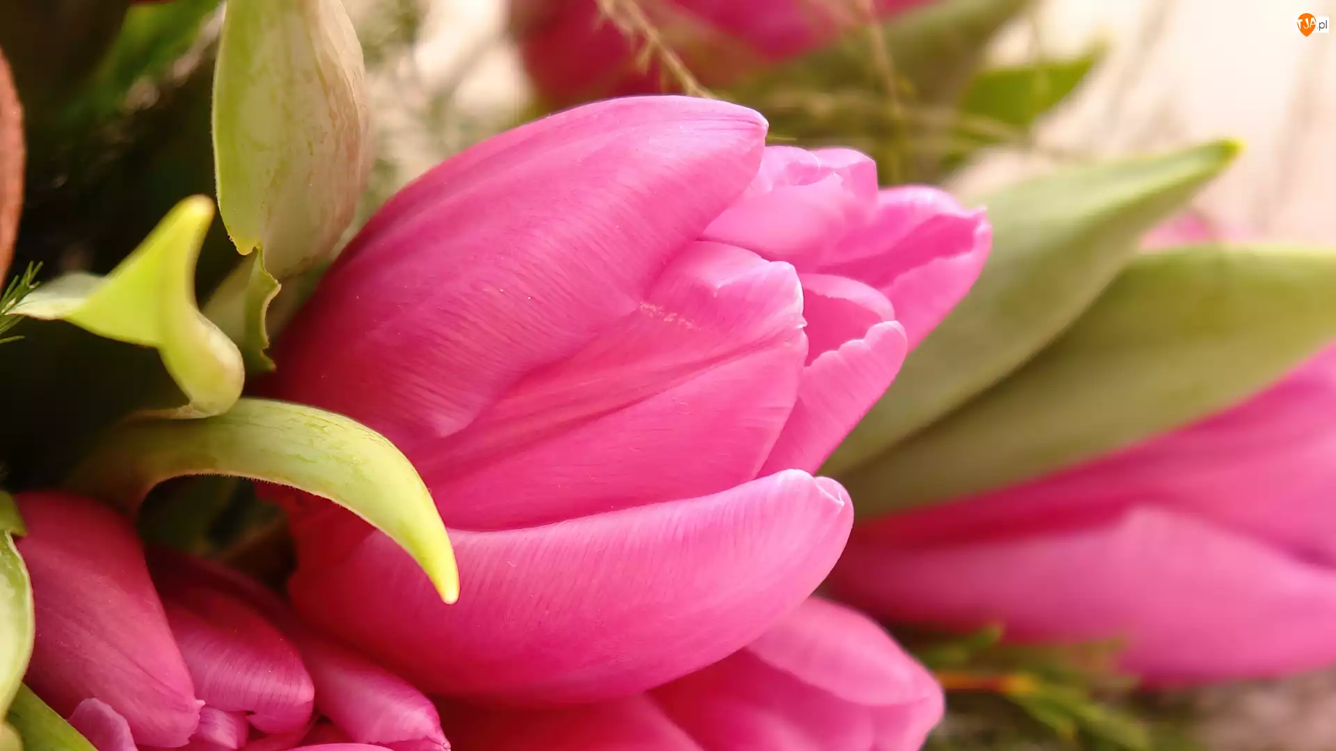 Różowe, Listki, Tulipany, Zielone