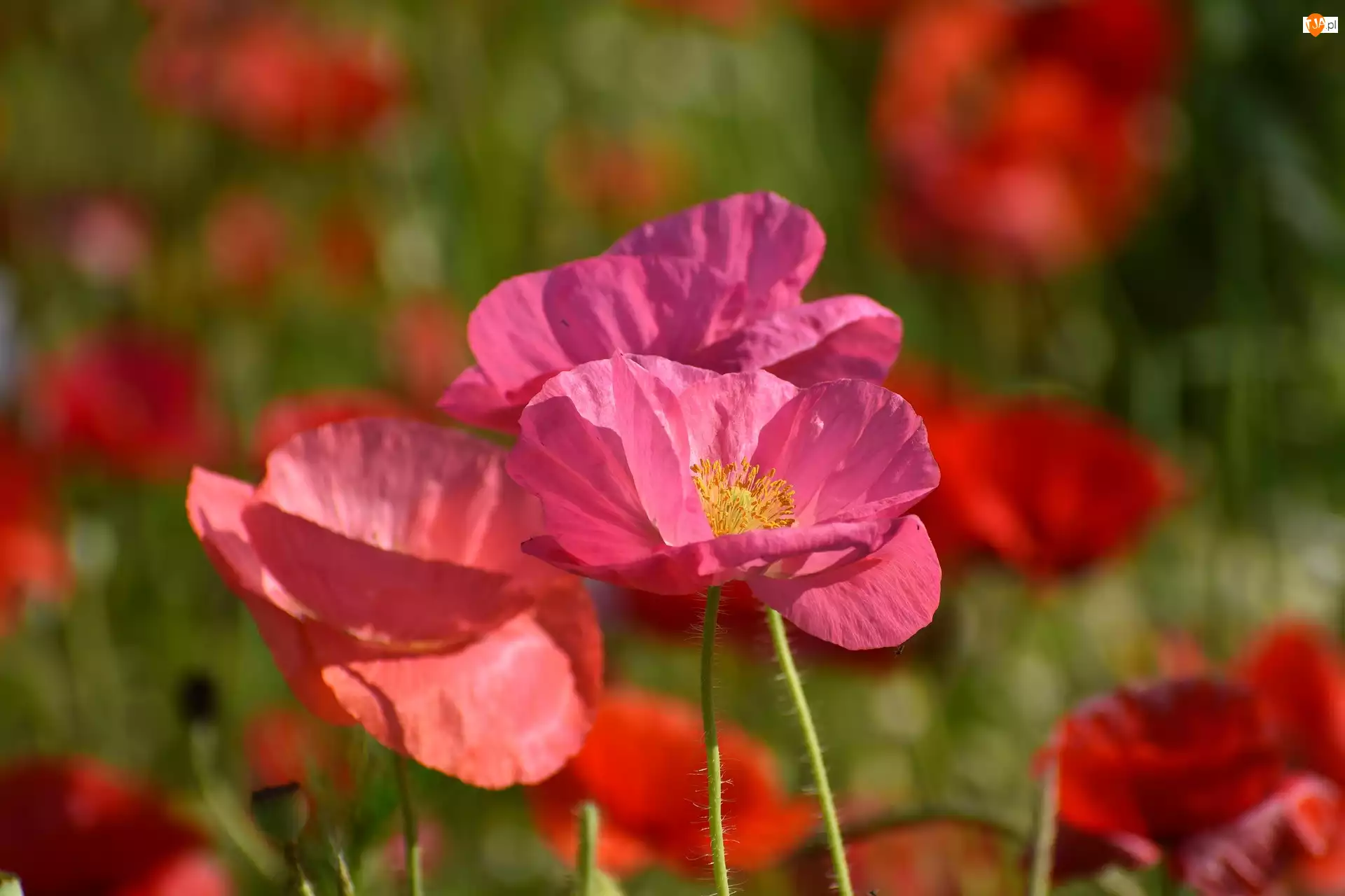 Różowe, Maki, Kwiaty