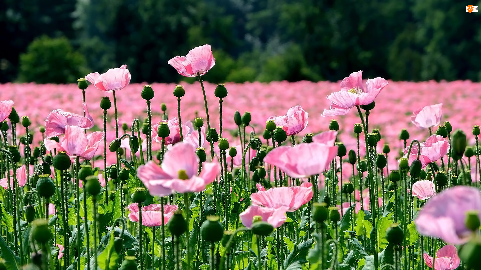 Różowe, Makówki, Maki, Kwiaty, Pąki