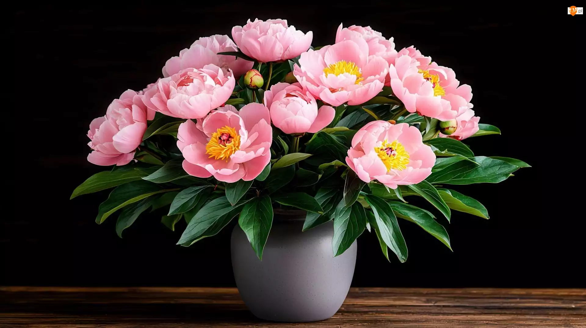 Różowe, Stół, Piwonie, Kwiaty, Wazon