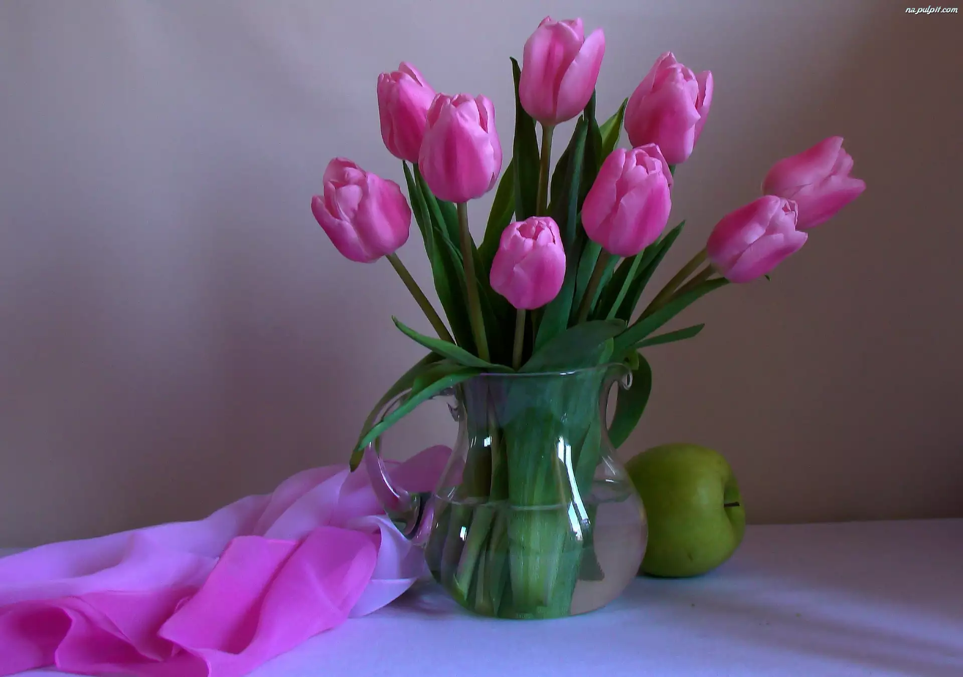 Różowe, Szal, Tulipany, Jabłko