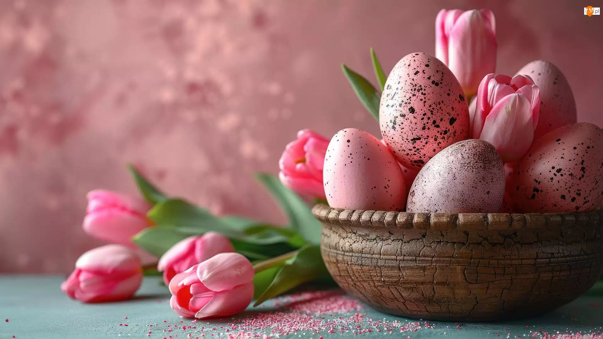 Różowe, Wielkanoc, Różowe, Misa, Pisanki, Tulipany