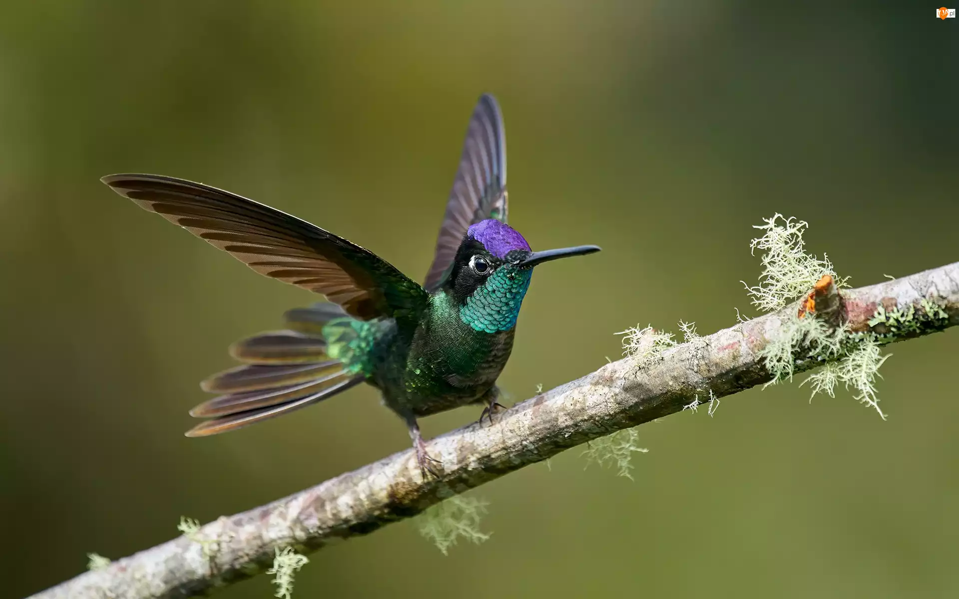 Rozpostarte, Gałąź, Koliber, Ptak, Skrzydła
