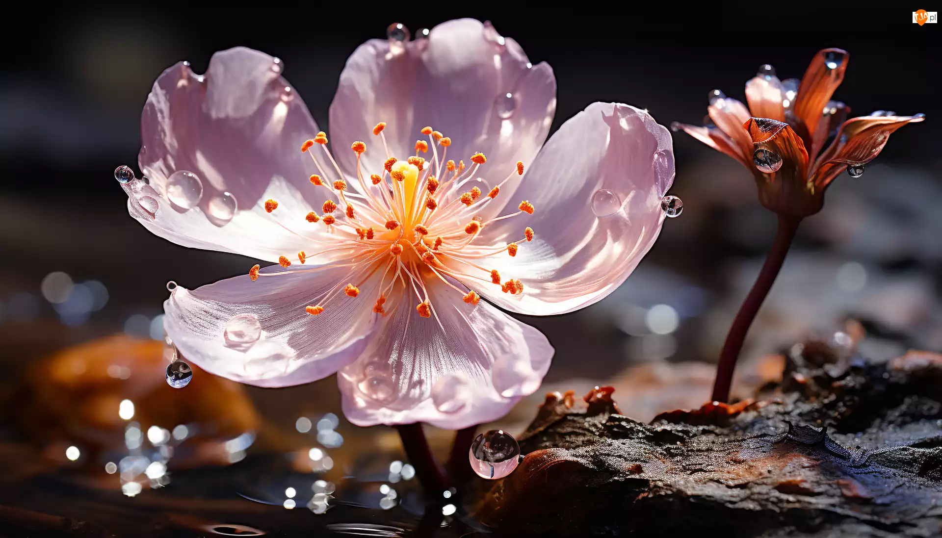 Rozwinięty, Jasnoróżowy, Pręciki, Grafika, Kwiat, Krople