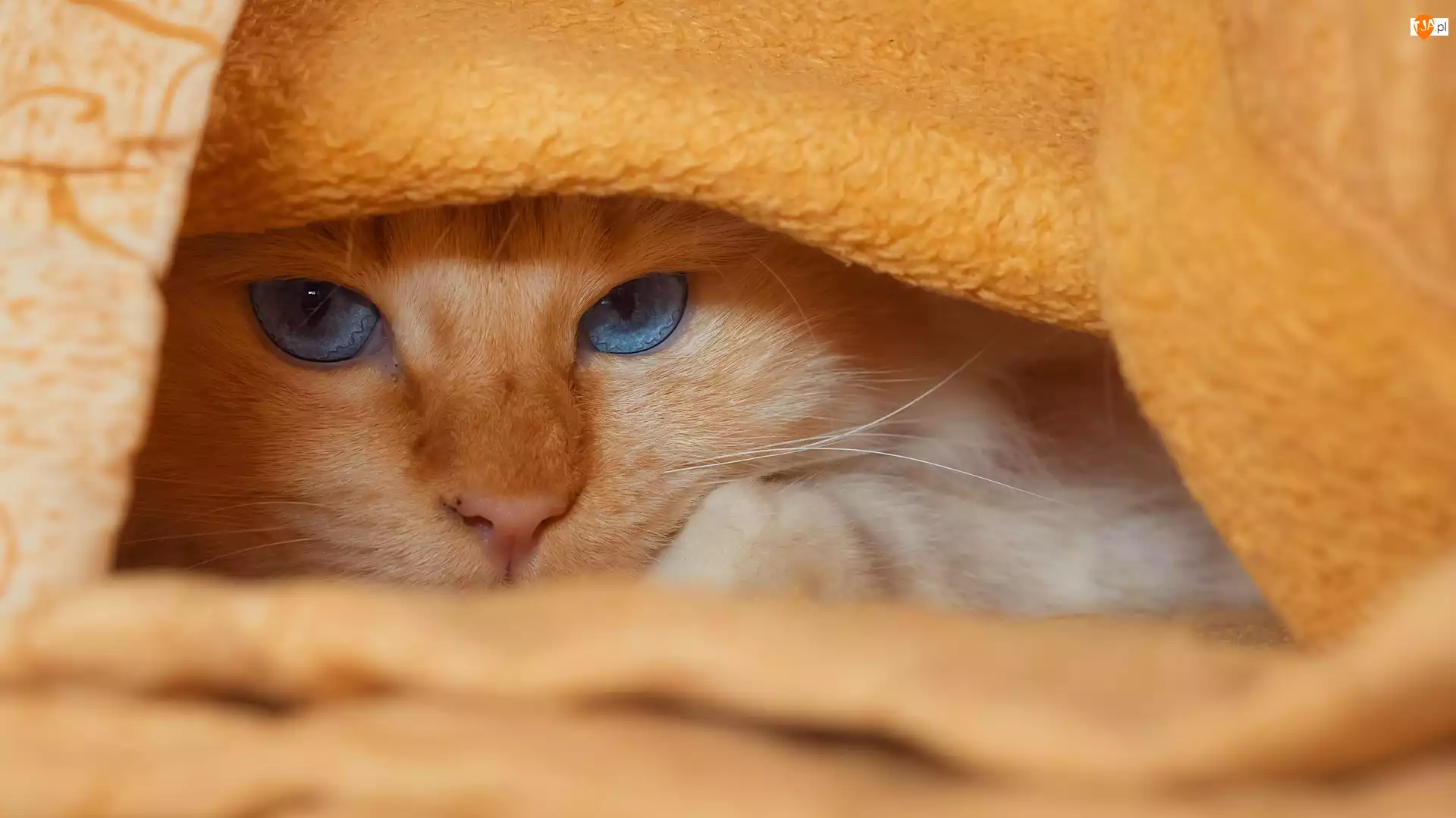 Rudawy błękitnooki kot pod kocem