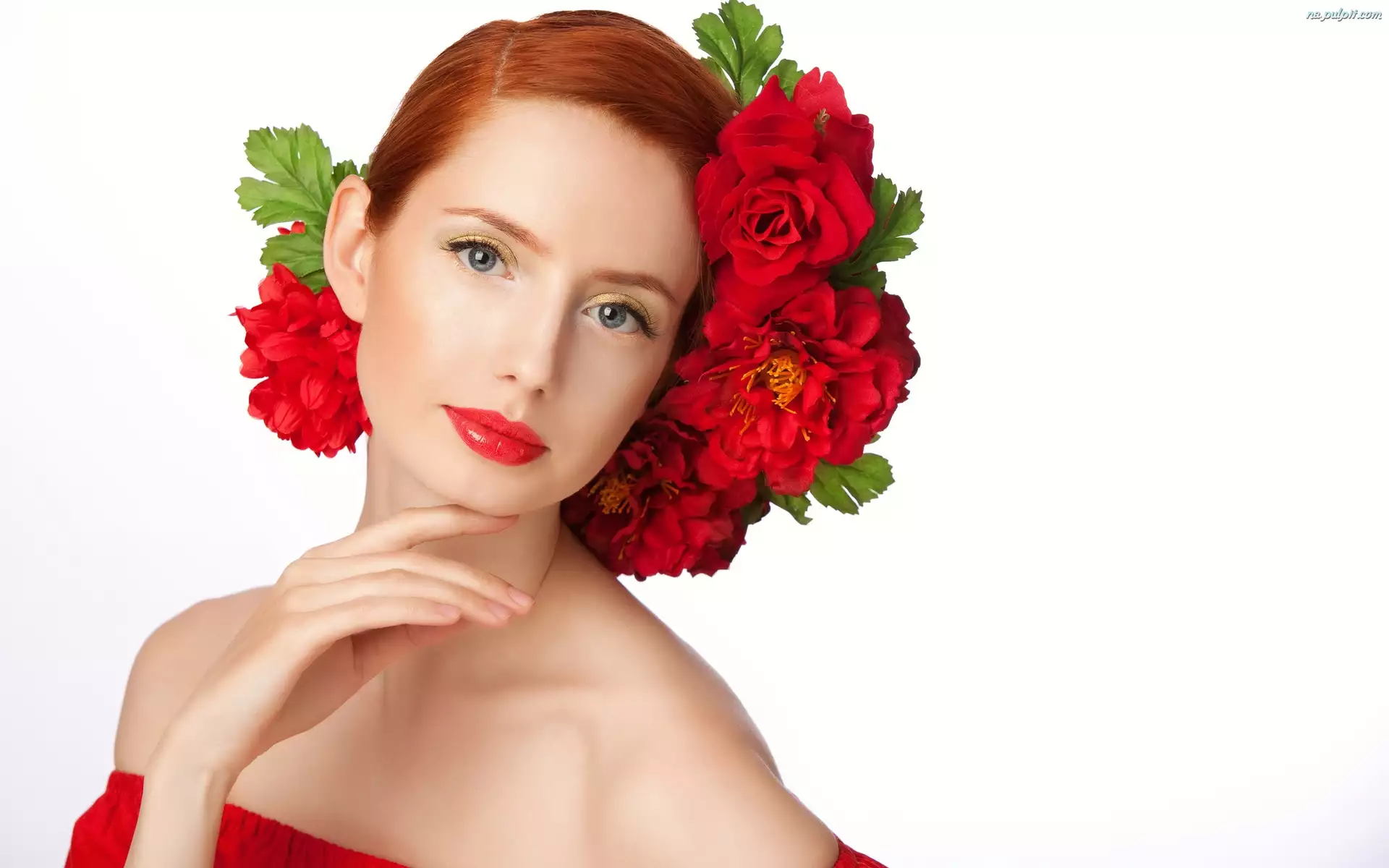 Rudowłosa, Kwiaty, Kobieta, Makijaż