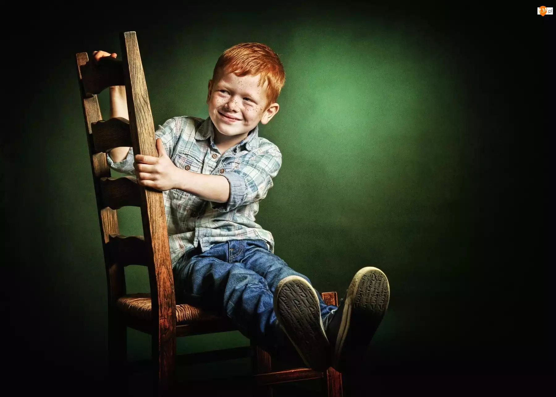 Rudy, Uśmiech, Chłopiec, Krzesło