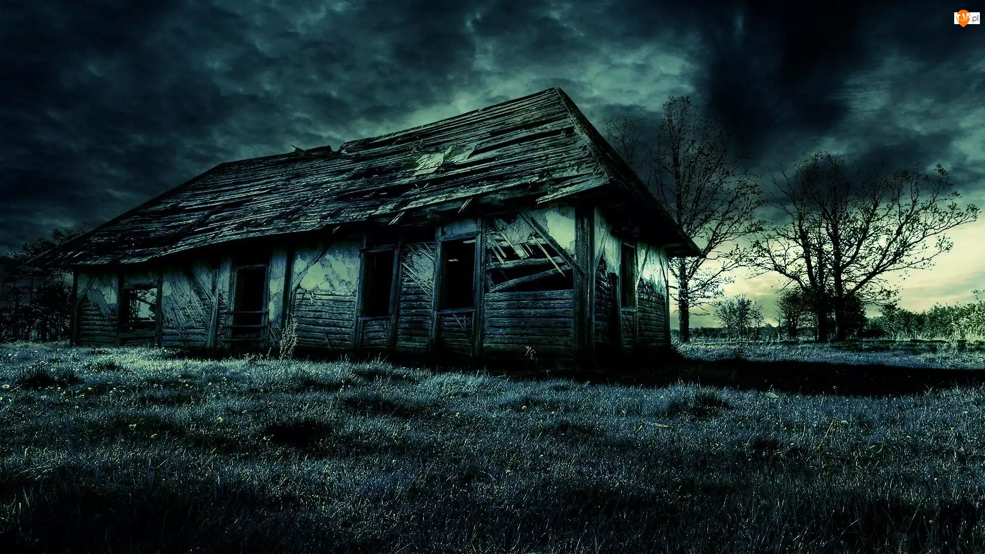 Dom, Opuszczony, Drzewa, Burzowe, Ruina, Chmury