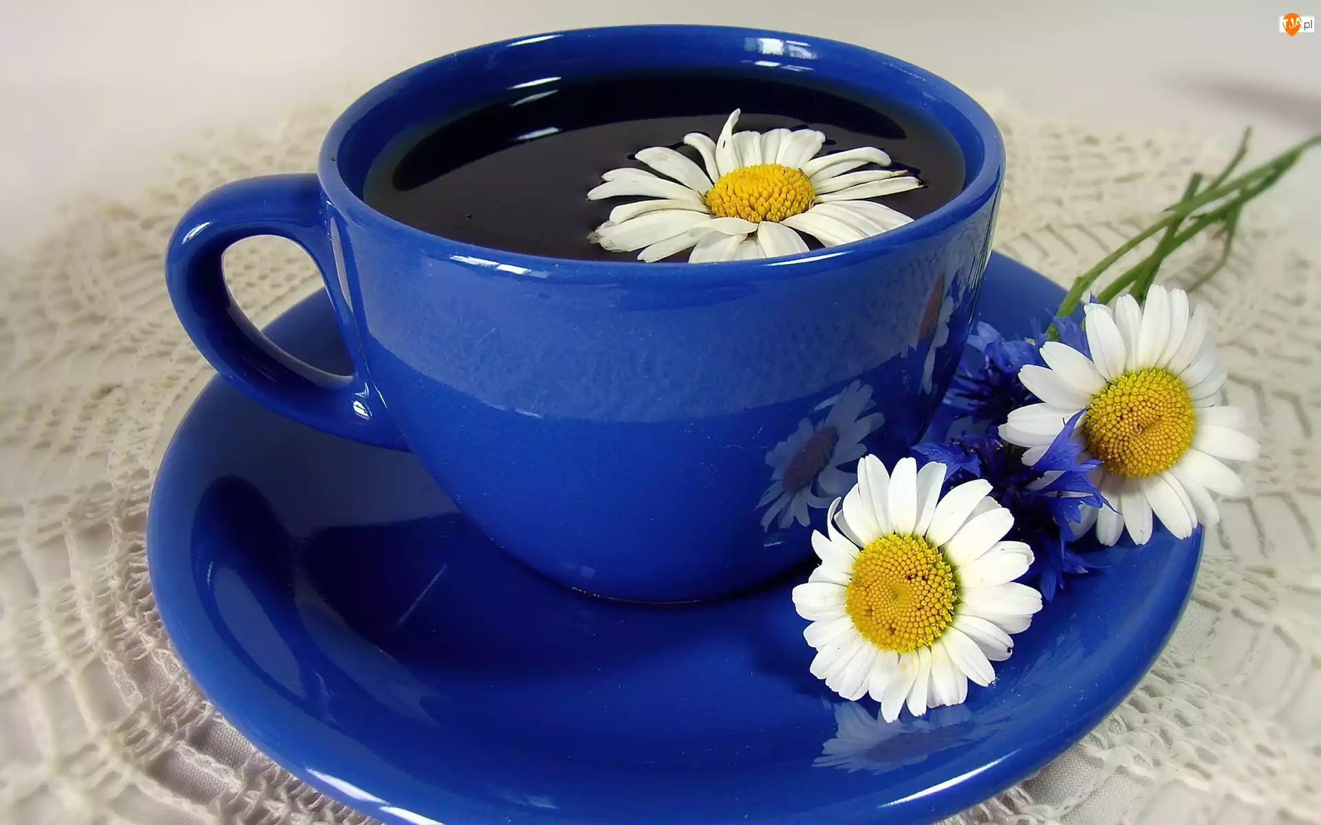 Rumianek, Niebieska, Talerzyk, Filiżanka, Herbata