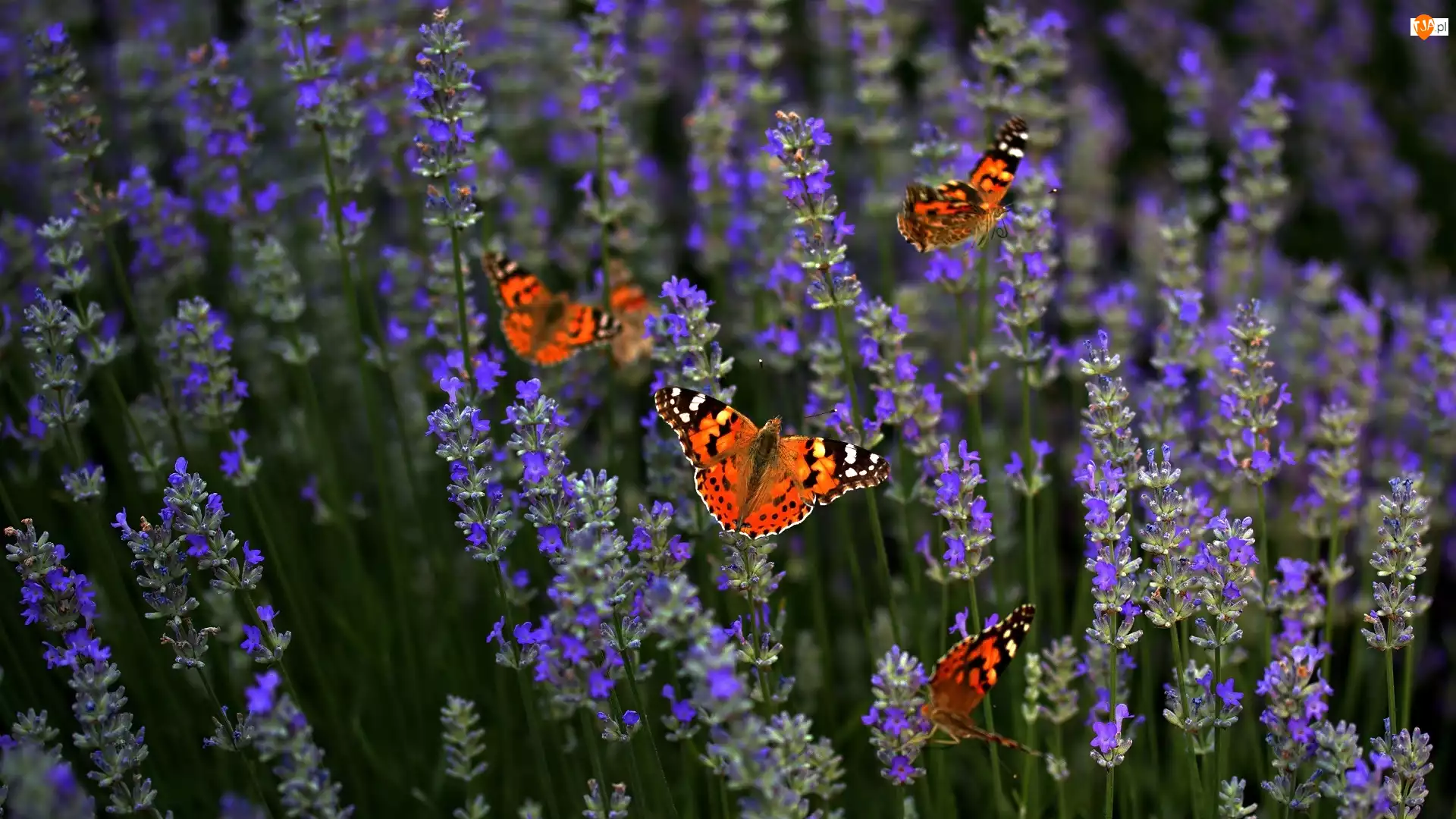 Rusałka osetnik, Kwiaty, Lawenda, Motyle