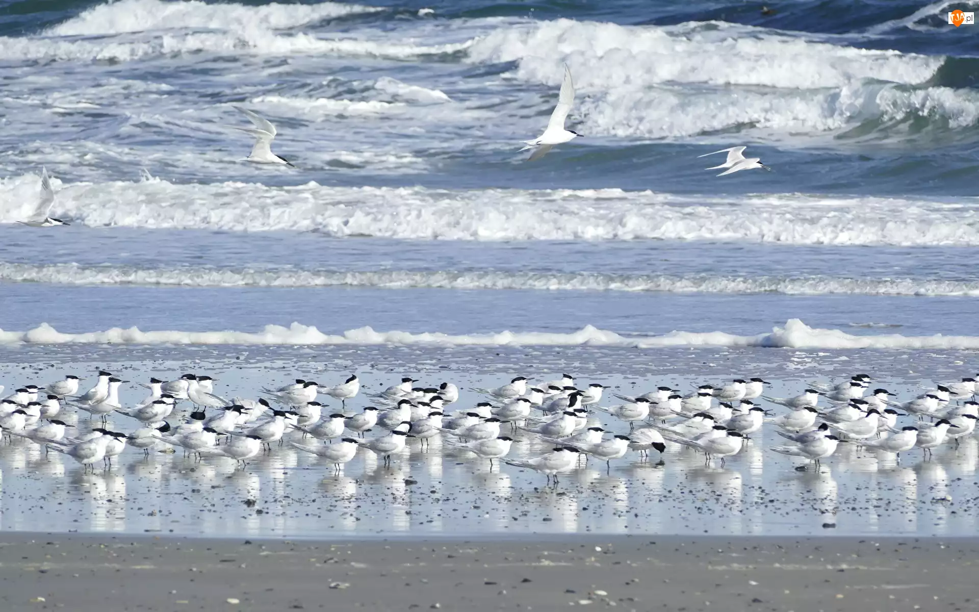 Rybitwy, Morze, Fale, Ptaki
