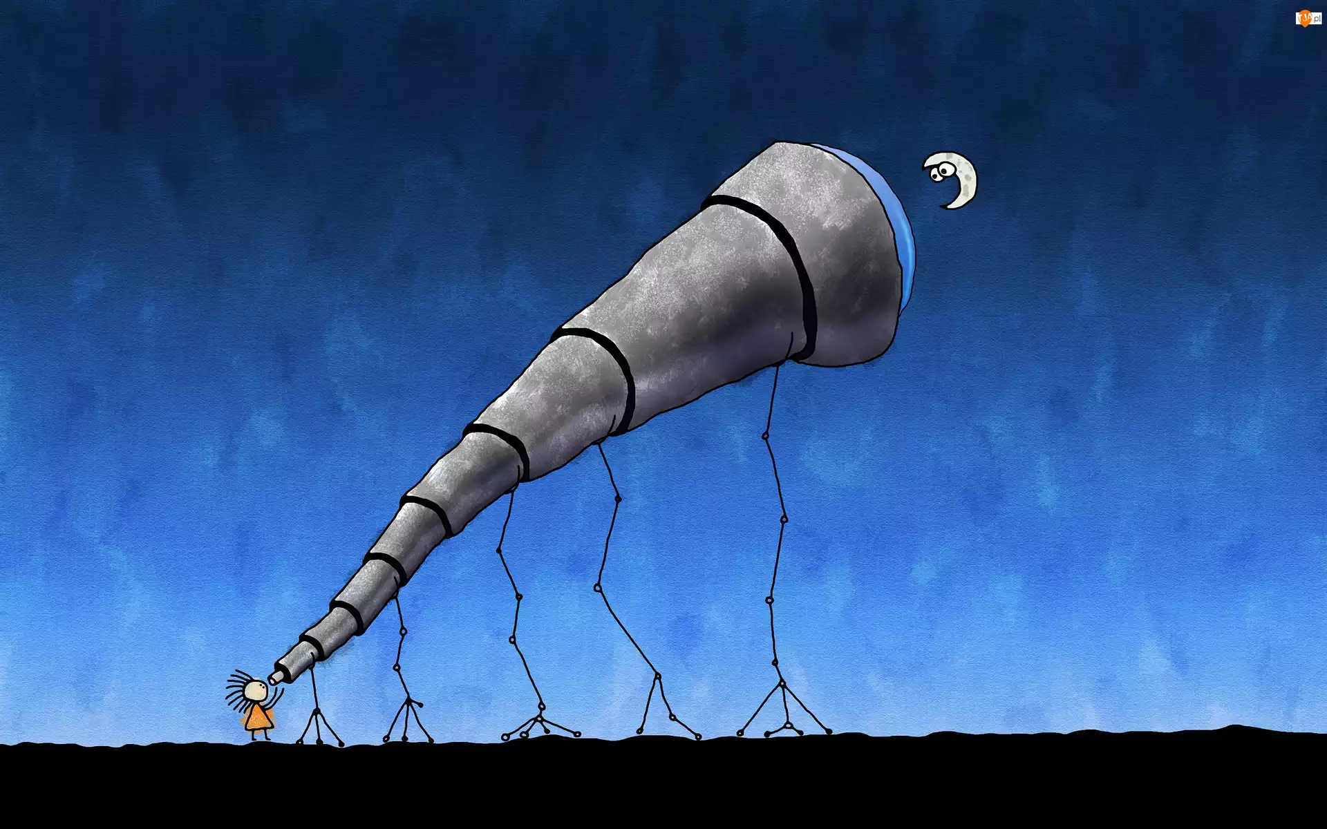 Rysunek, Noc, Postać, Teleskop, Księżyc