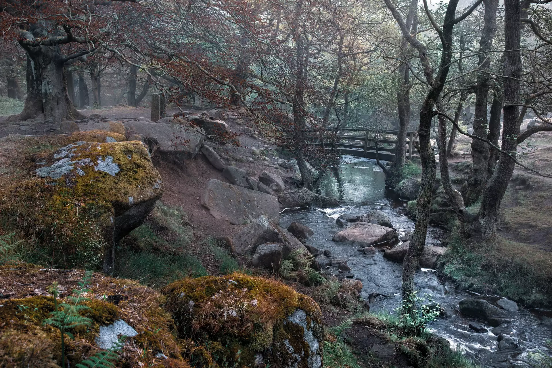Rzeka Burbage Brook, Drzewa, Anglia, Mostek, Hrabstwo Derbyshire, Grindleford, Kamienie