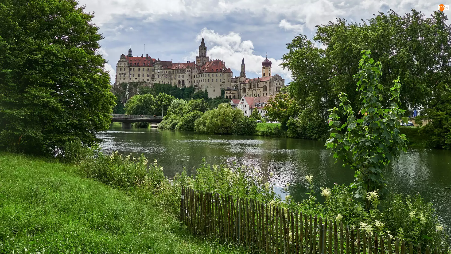 Rzeka, Drzewa, Niemcy, Zamek Sigmaringen, Dunaj