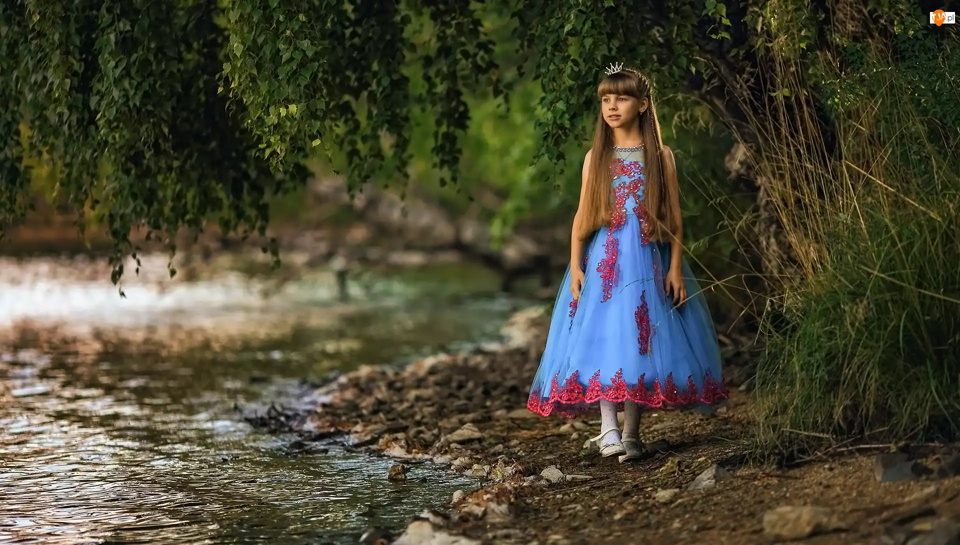Rzeka, Dziecko, Dziewczynka, Drzewa