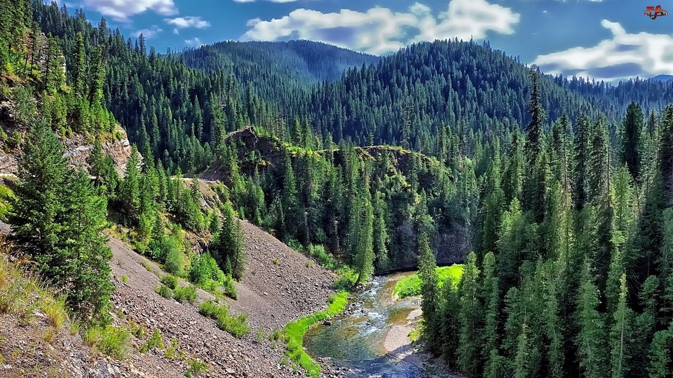 Góry, Drzewa, Lasy, Rzeka