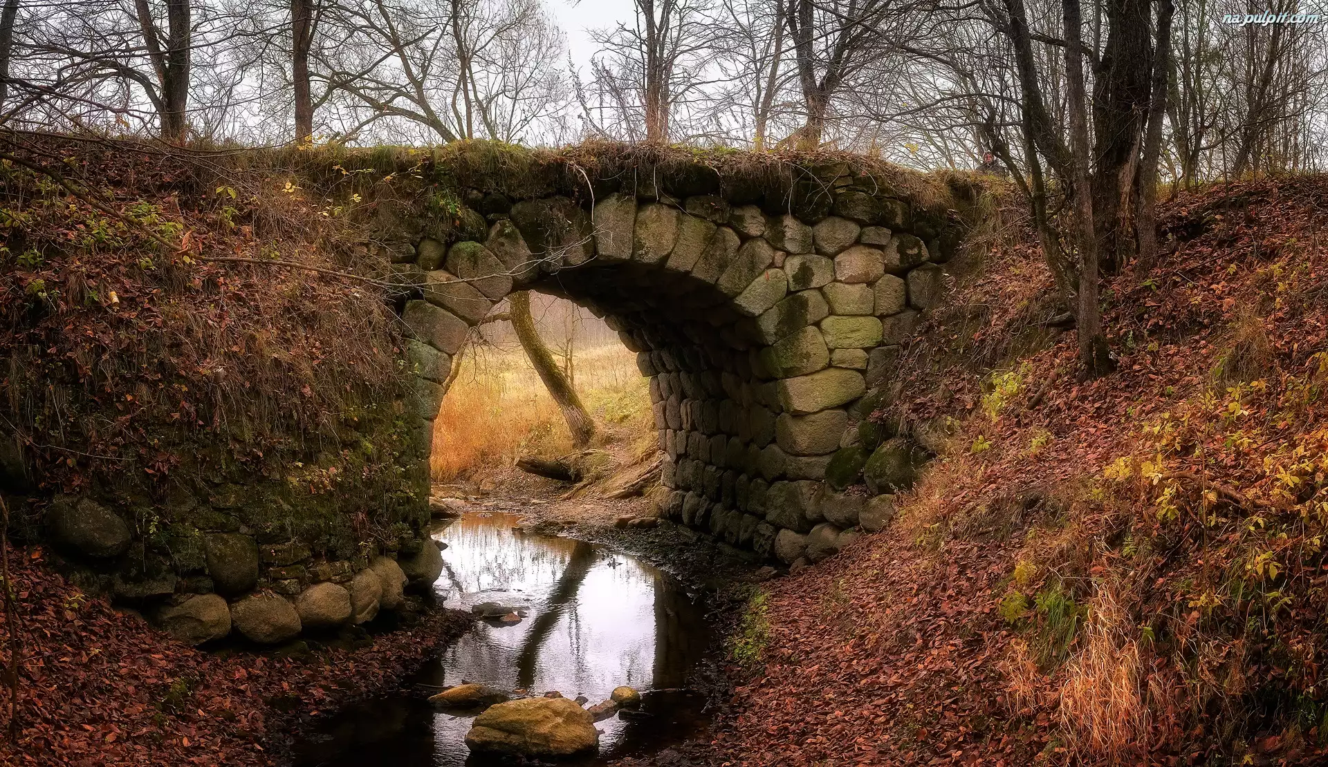 Rzeka, Jesień, Most, Drzewa, Kamienny, Kamienie