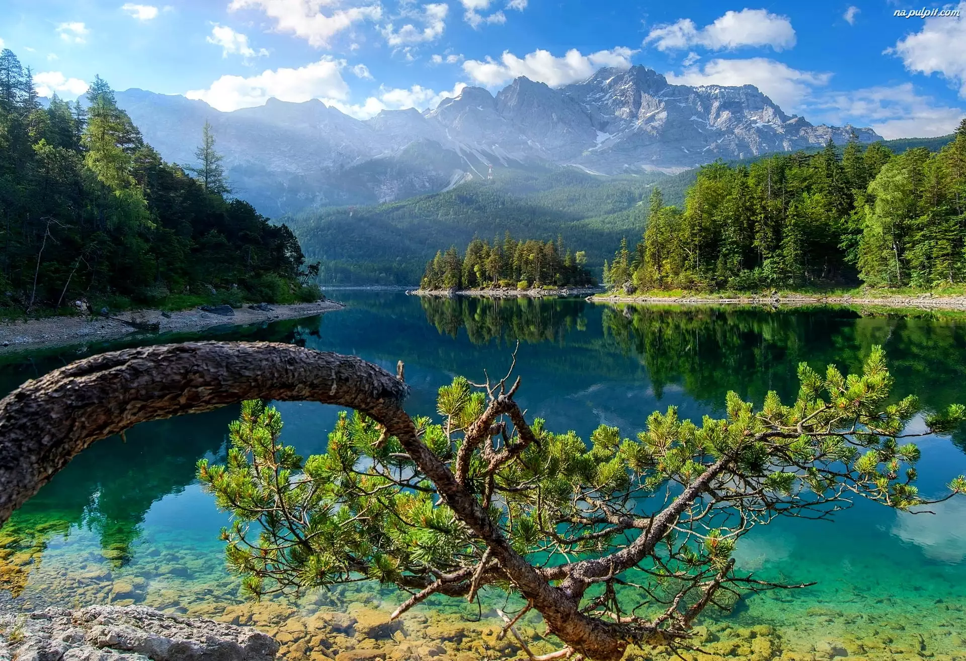 Rzeka, Lasy, Drzewo, Pochylone, Góry