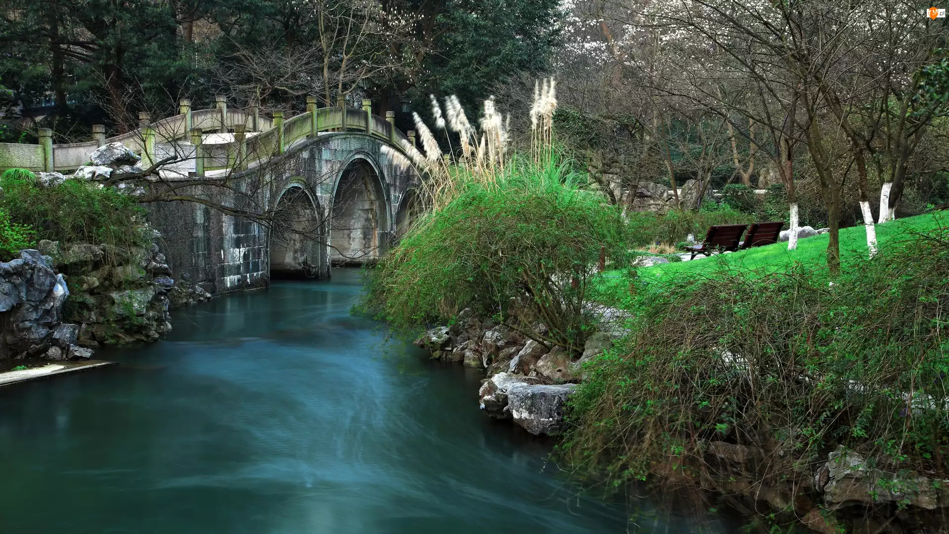 Rzeka, Most, Chiny, Park, Hangzhou, Bay Park Prince, Taiziwan Park