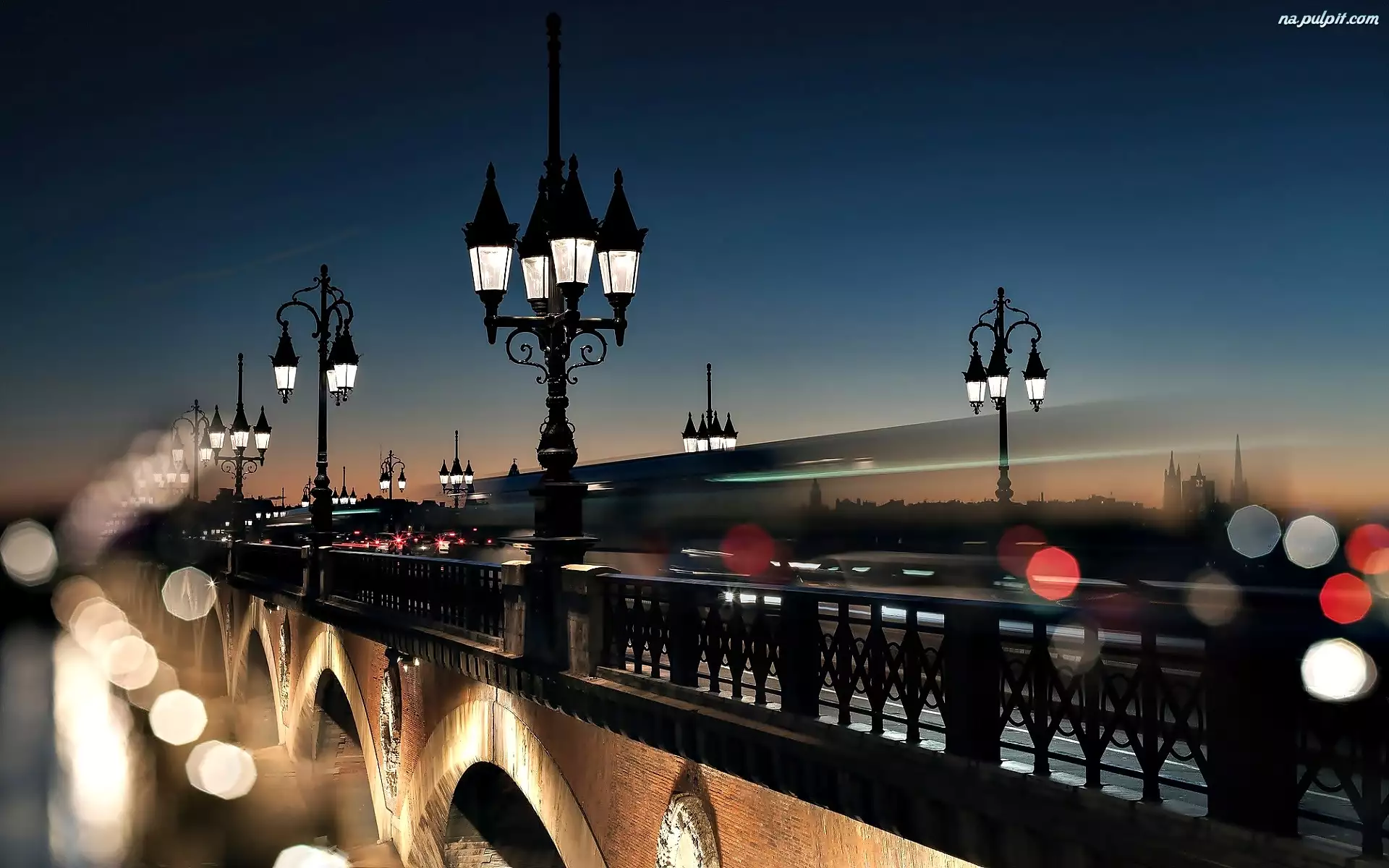 Rzeka, Most, Francja, Latarnie, Bordeaux, Zabytkowy