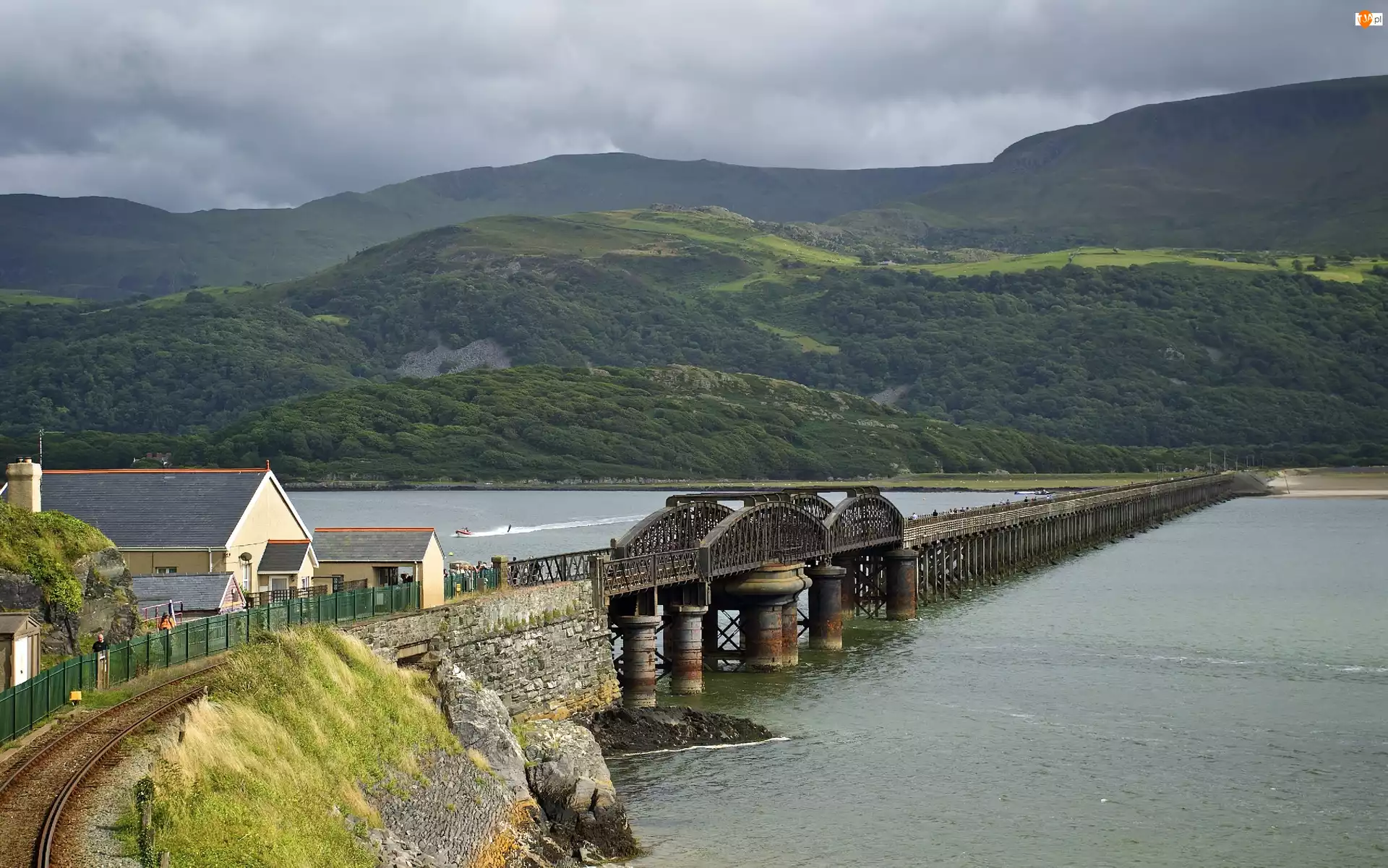 Rzeka, Most, Góry, Kolejowy, Lasy, Domy