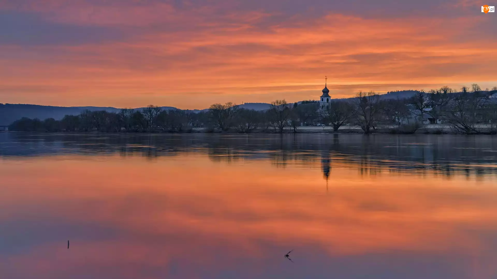 Rzeka Mozela, Niemcy, Zachód słońca, Kościół