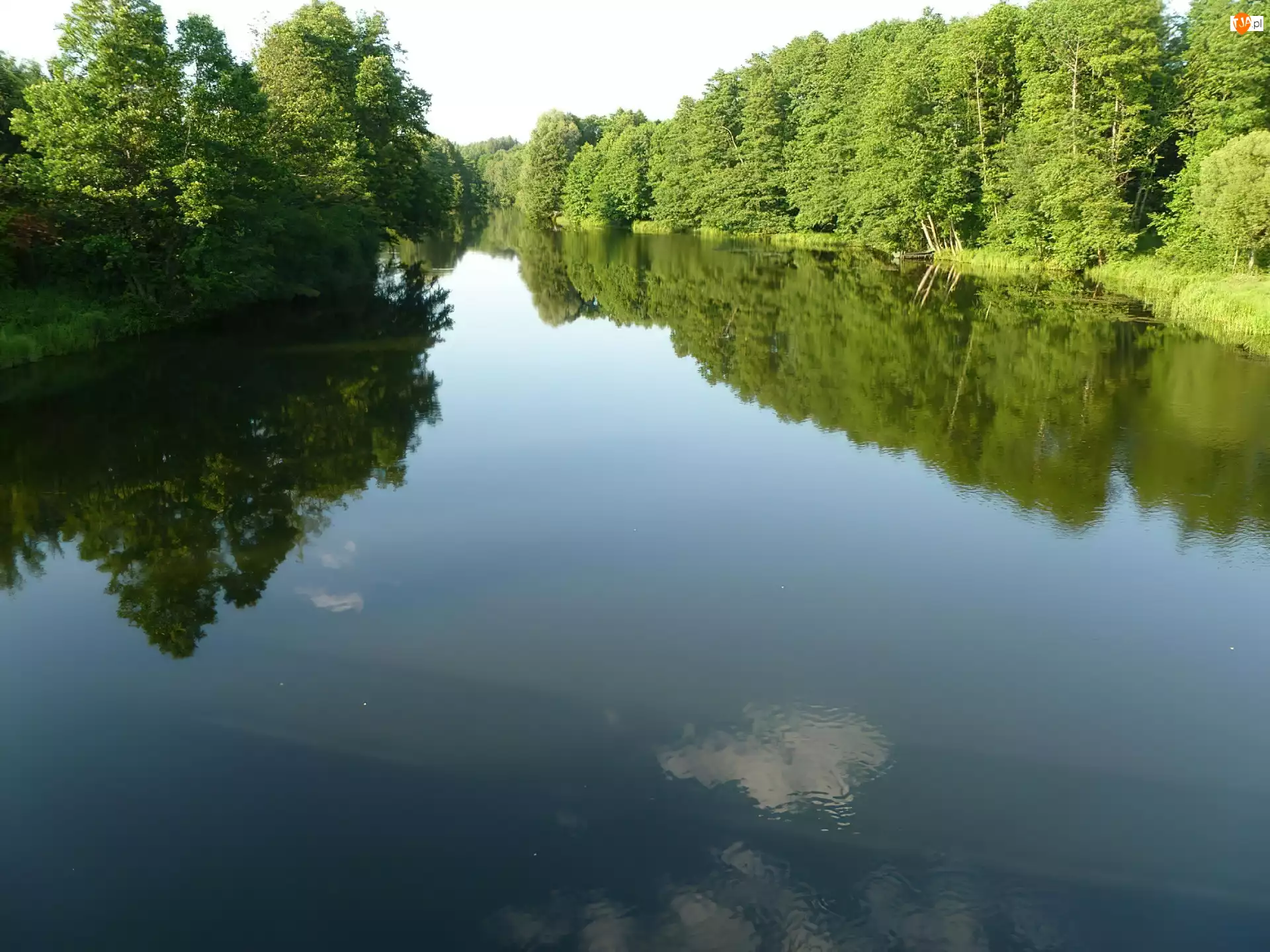 Rzeka, Odbicie, Drzewa, Lustrzane