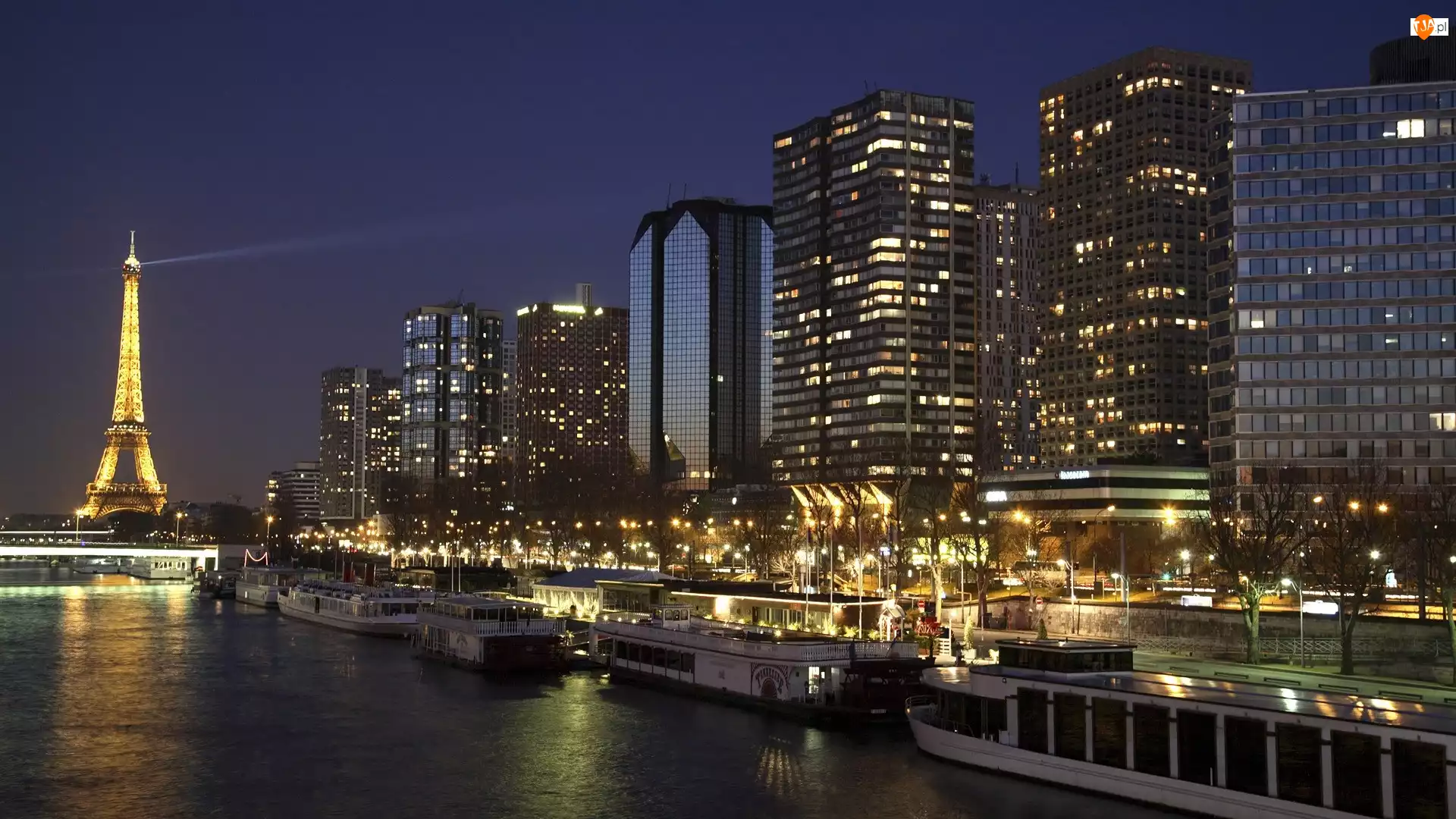 Rzeka, Paryż, Wieża, Nocą, Eiffla