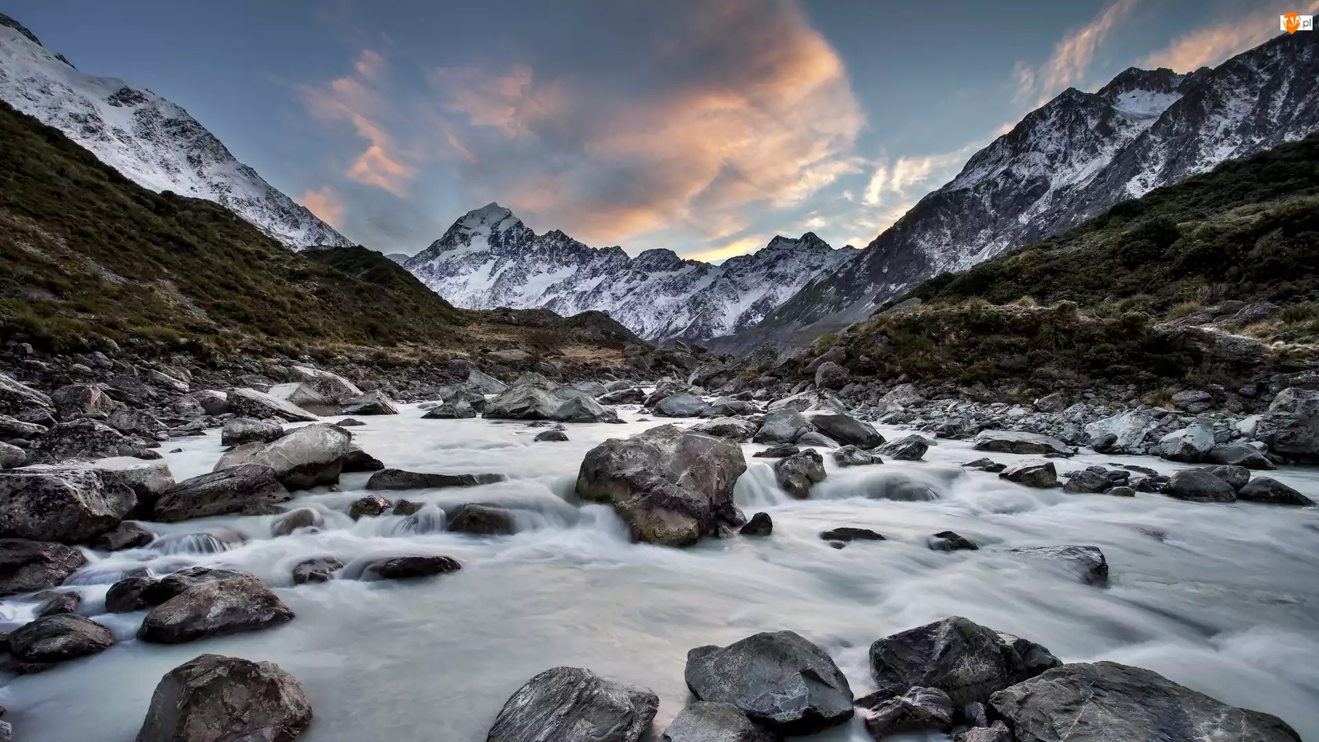 Góry, Kamienie, Park Narodowy Góry Cooka, Nowa Zelandia, Rzeka